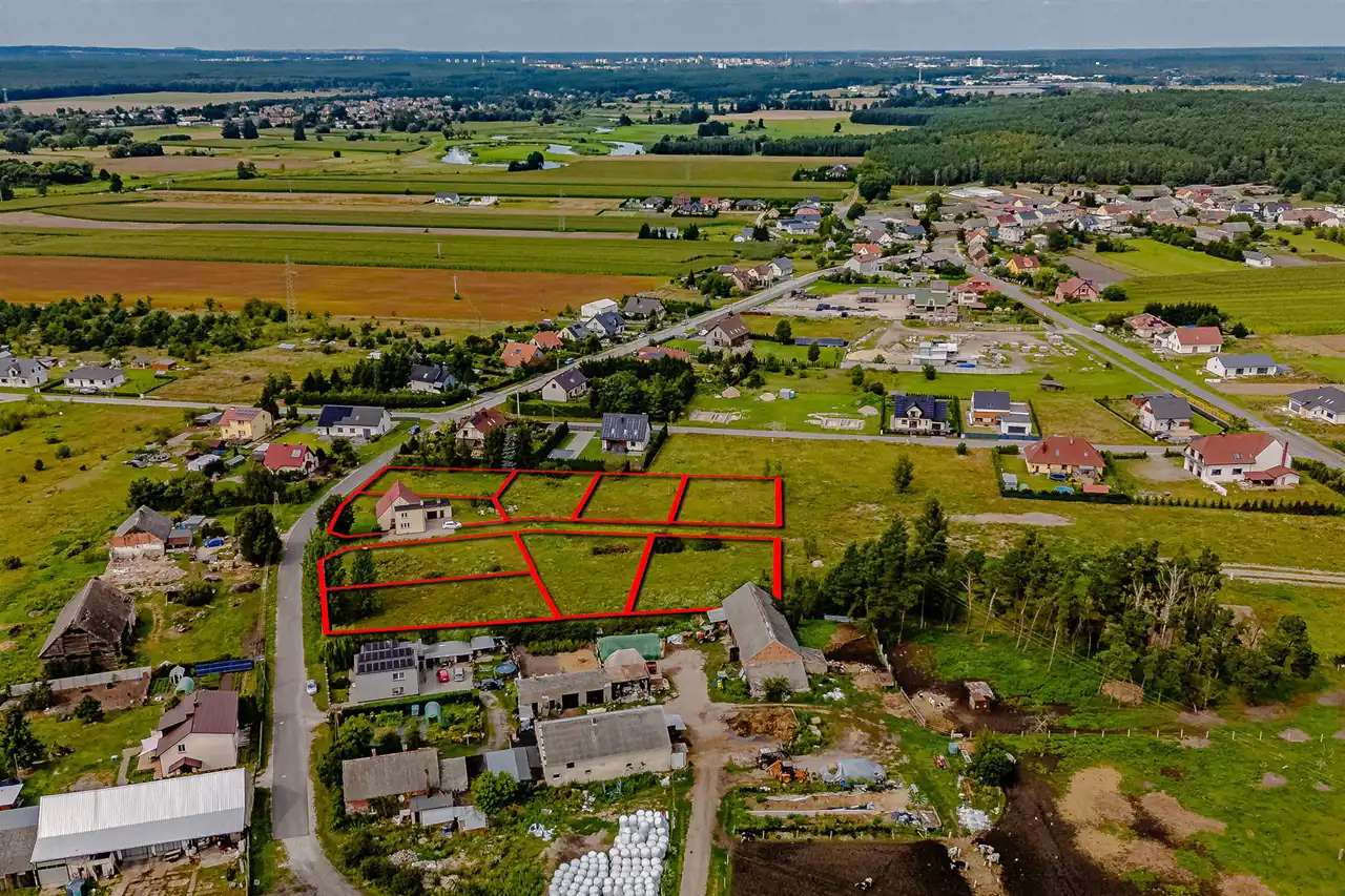 Działki w planie zagospodarowania przestrzennego, przeznaczone pod wybudowanie jednego wolnostojącego budynku mieszkalnego jednorodzinnego, budynku gospodarczego, garażowego lub gospodarczo-garażowego, wiaty.