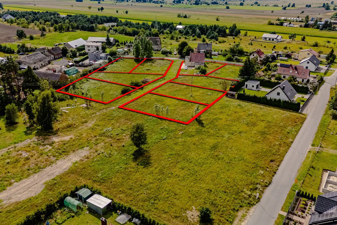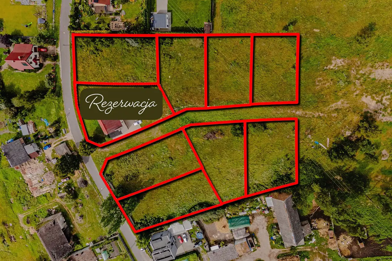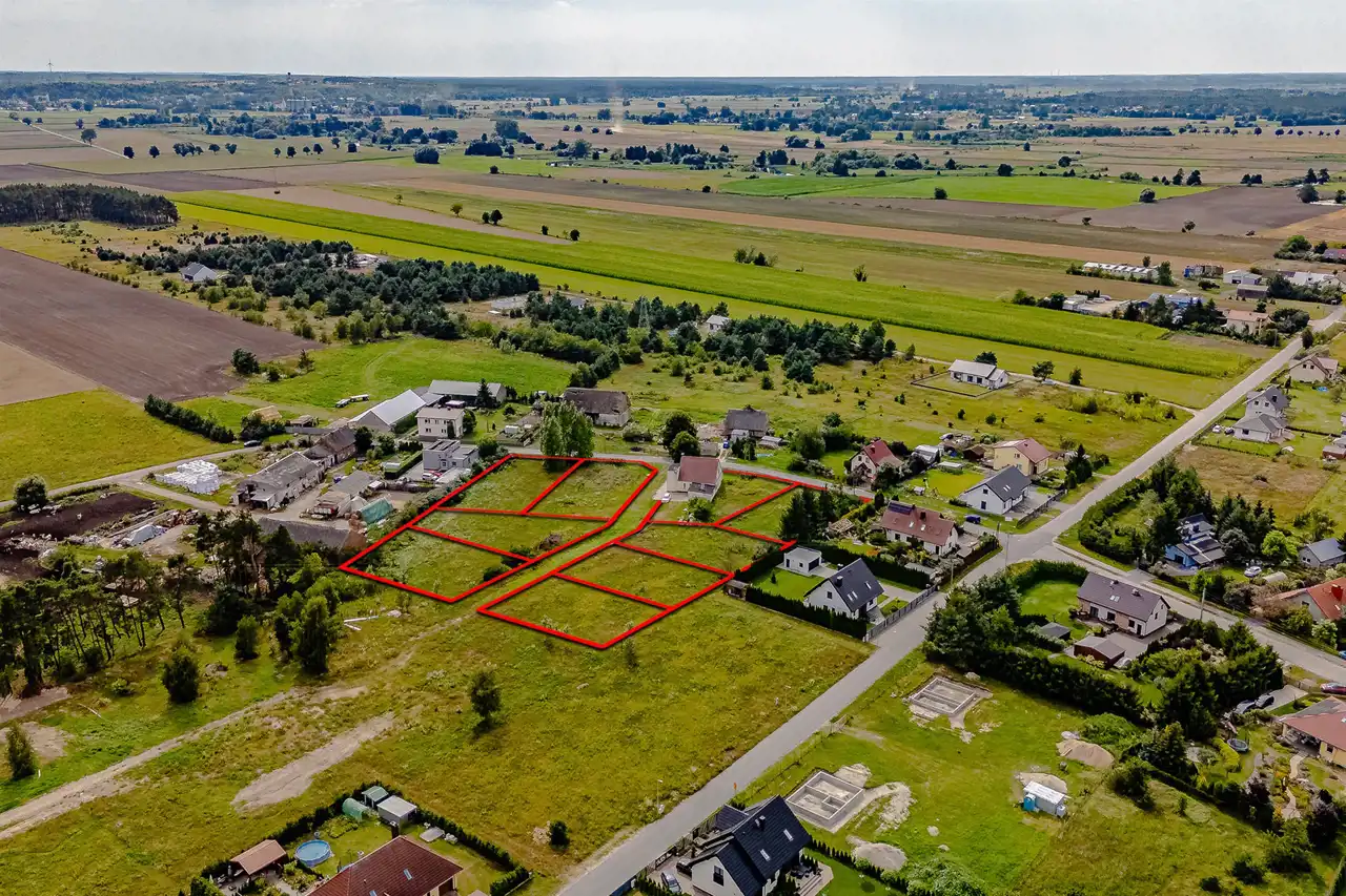 Osiem działek o powierzchni: 952m2, 809m2, 748m2, 722m2, 1056m2, 1011m2, 923m2, 909m2.