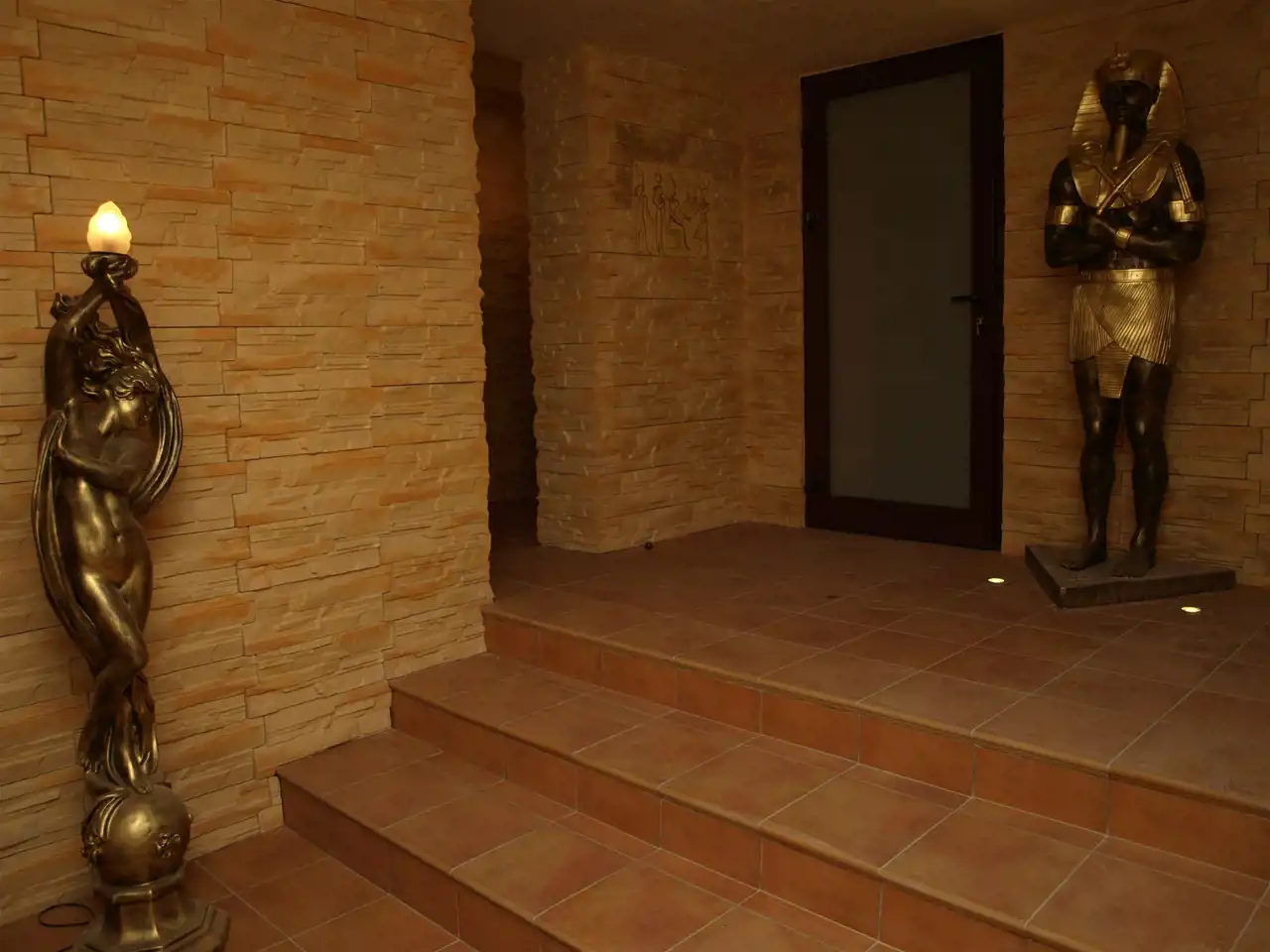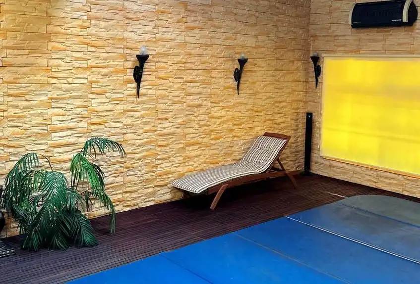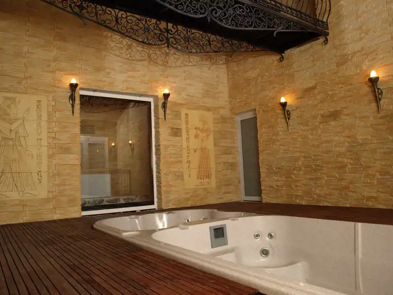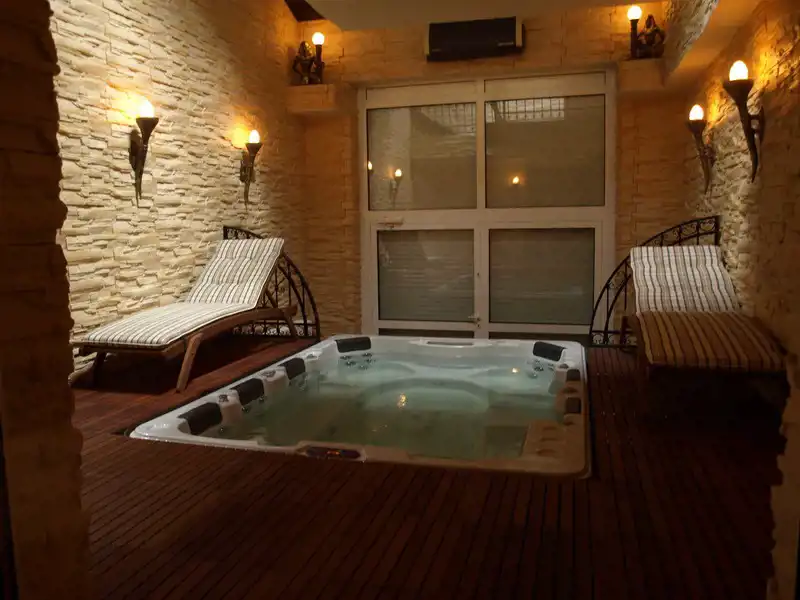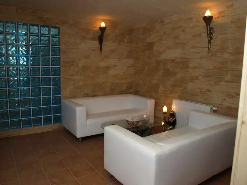 - budynek główny z pokojami dla ok. 50 osób, salą konferencyjną/weselną oraz kuchnią i pomieszczeniem zmywarni które łączy winda techniczna, strefą spa-wellness w basenem , salą kinową, barem z lobby , ogrodem zimowym/oranżerią,