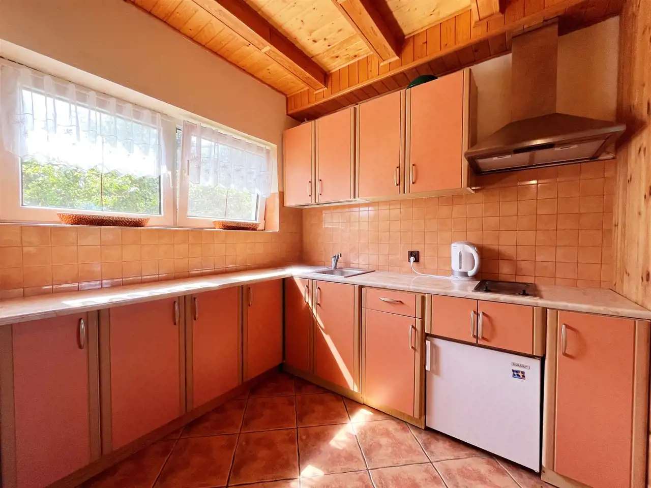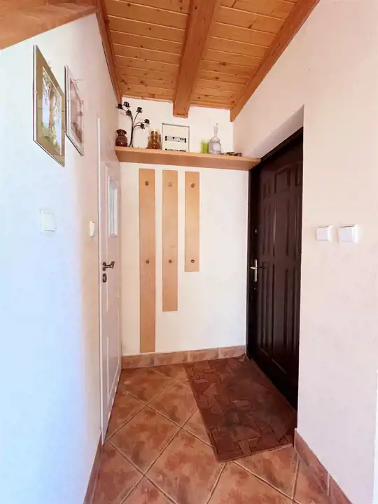 Standard wykończenia: na ścianach tynki tradycyjne gładzone, w aneksie kuchennym oraz łazience uzupełnione glazurą. Na podłogach parteru terakota. Na poddaszu na ścianach tynki tradycyjne oraz drewniana okładzina w bardzo dobrym stanie. Na podłogach deska drewniana.