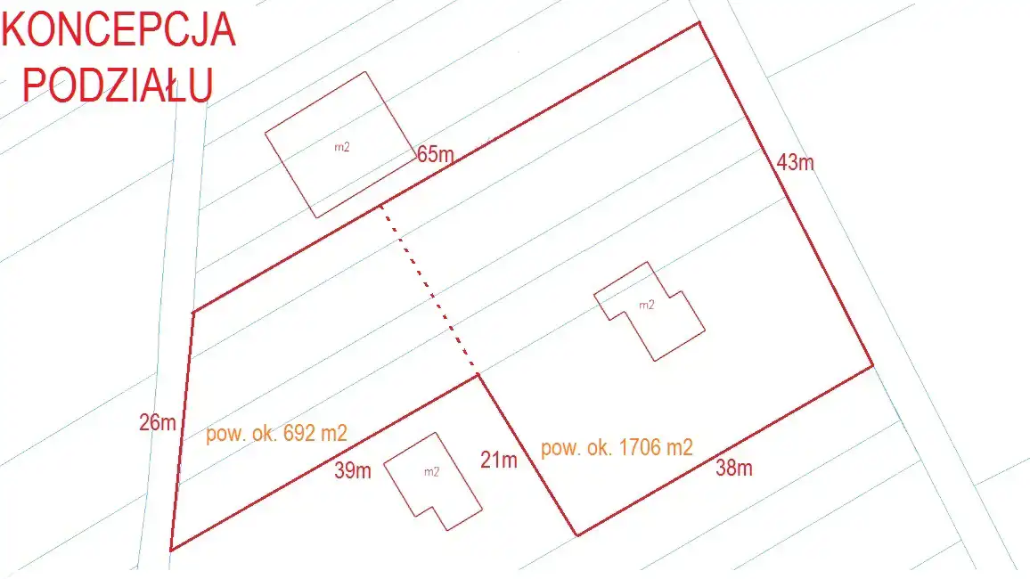 - Działka Zagospodarowana, płaska, w kształcie litery L