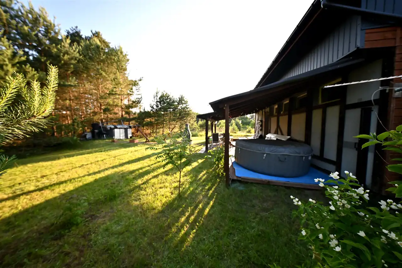 Działka: 1000 m² – ogrodzona, zagospodarowana (miejsce na grilla, jacuzzi na 6 osób w cenie nieruchomości, duży wygodny hamak, taras o wielkości około 30m² zadaszony od strony południowej.