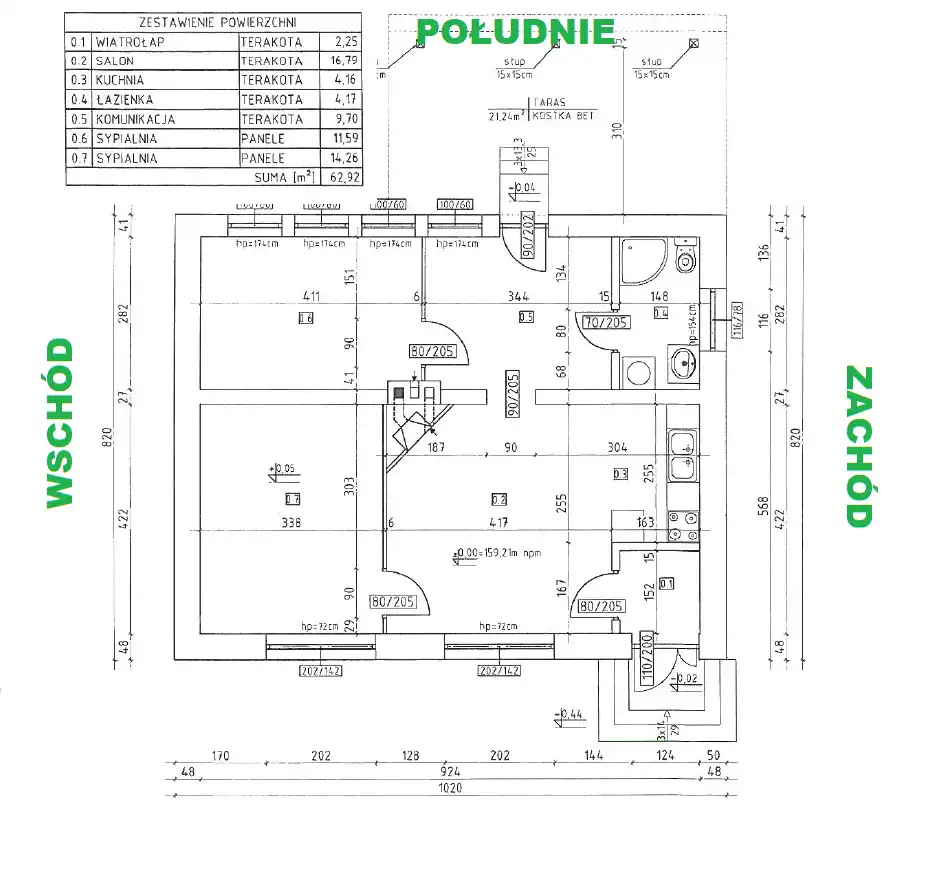 Powierzchnia domu całkowita : 205,87 m² murowany i ocieplony (beton komórkowy 24cm + styropian 15cm, ocieplenie poddasza - piana PUR 30cm.
