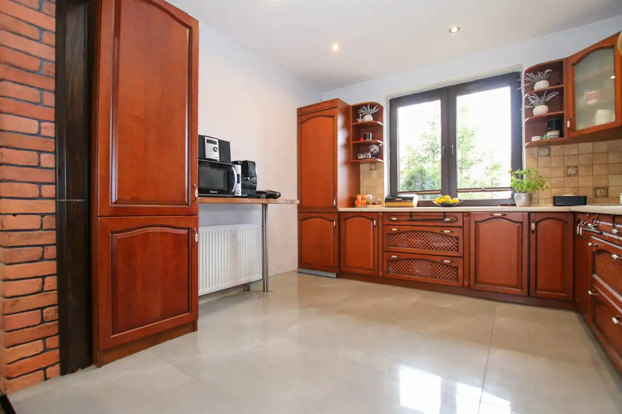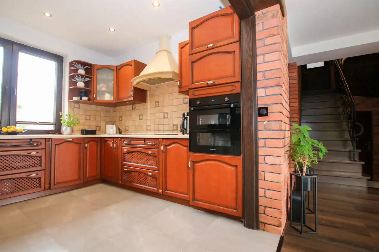 - klasyczna zabudowa w ciepłym, drewnianym wybarwieniu