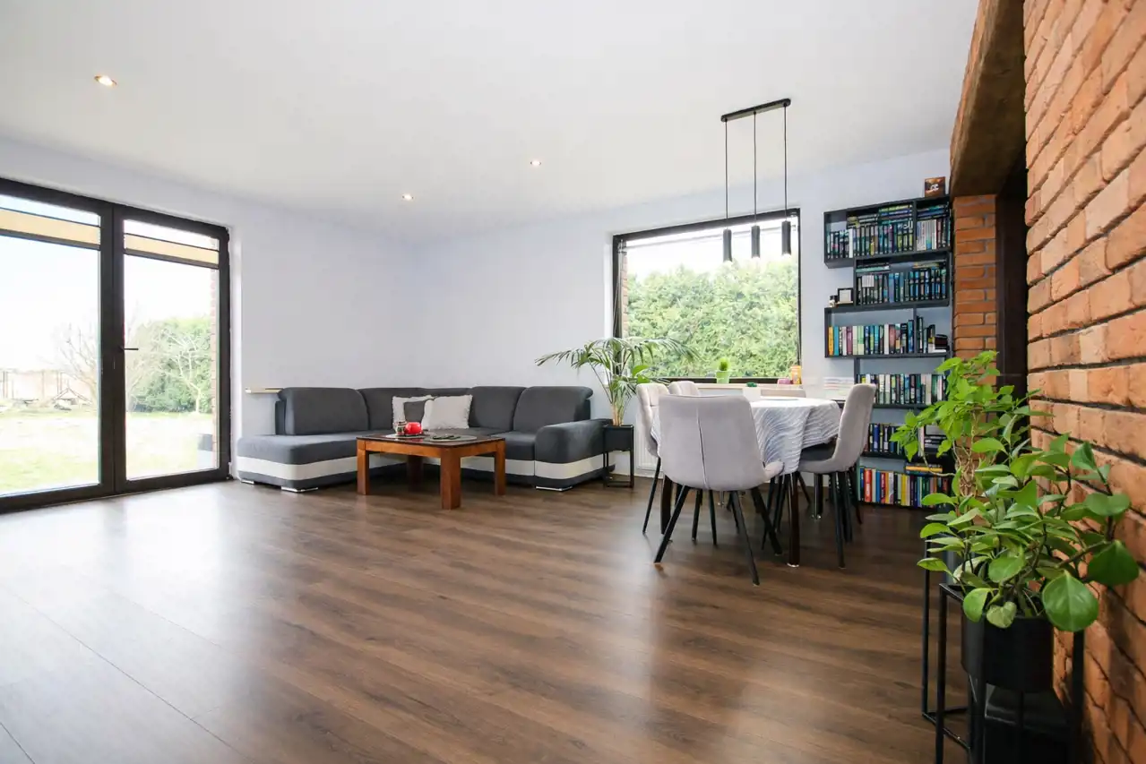 - przestronny, jasny salon z jadalnią w układzie otwartym