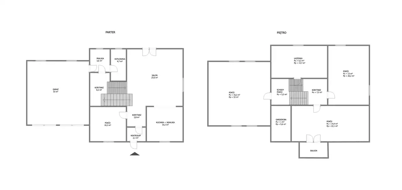 Budynek o powierzchni całkowitej 204,8 m² oraz powierzchni użytkowej 166,3 m² został zaprojektowany z myślą o wygodzie codziennego życia. Na parterze znajduje się przestronny salon połączony z kuchnią i jadalnią, sypialnia, toaleta oraz korytarz. Dodatkowo do dyspozycji są pomieszczenia gospodarcze, takie jak kotłownia i pralnia. Na piętrze mieszczą się 3 pokoje, garderoba oraz duża łazienka.
