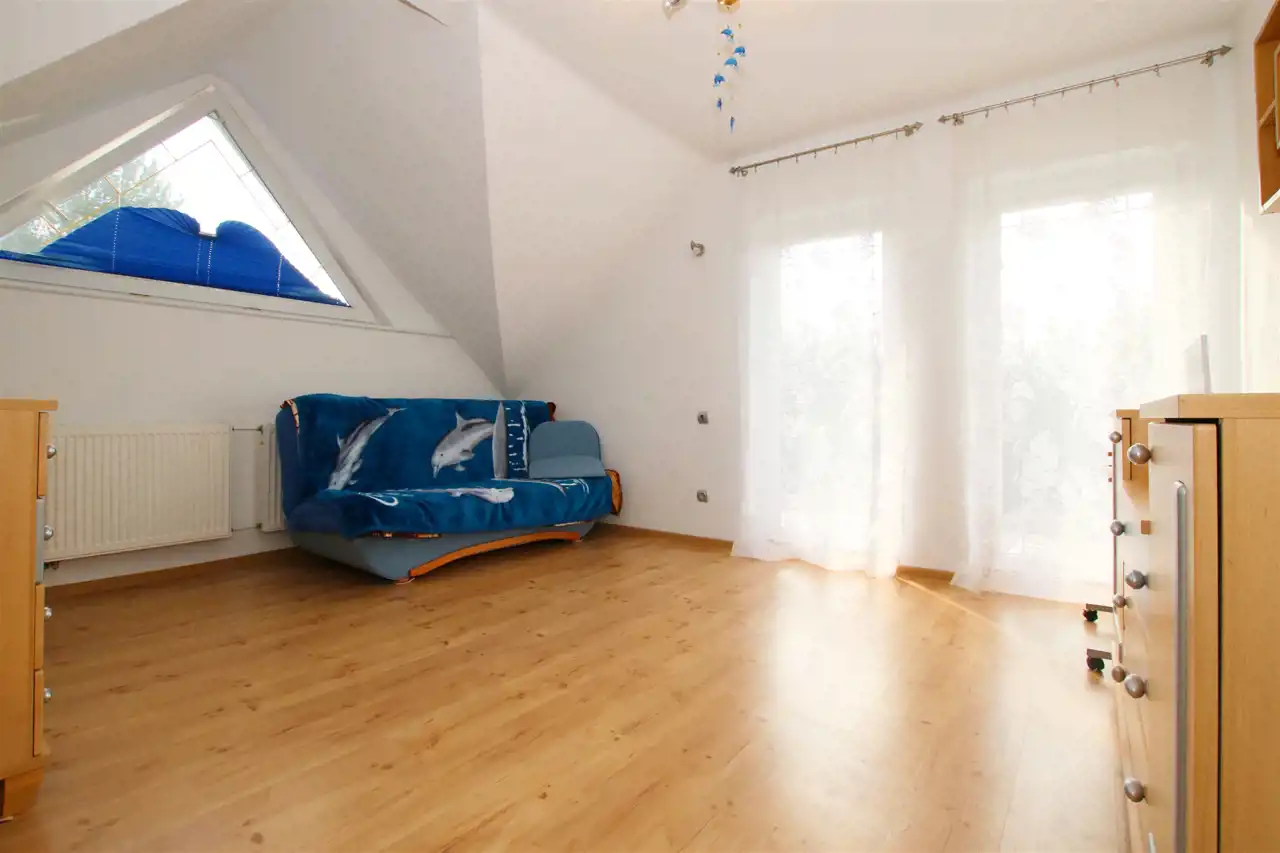 Sypialnie w strefie nocnej są bardzo wygodne i ustawne, zapewniające optymalne warunki do nauki i wypoczynku. Z dwóch pokoi wyjście na duży taras. Program piętra uzupełnia duża, jasna łazienka oraz wejście na strych z części komunikacyjnej.