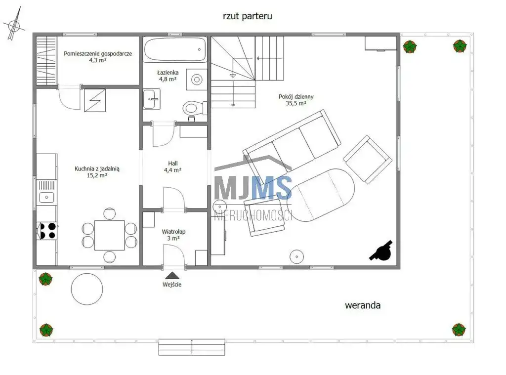 - pomieszczenie gospodarcze / spiżarnia – 4,3 m²