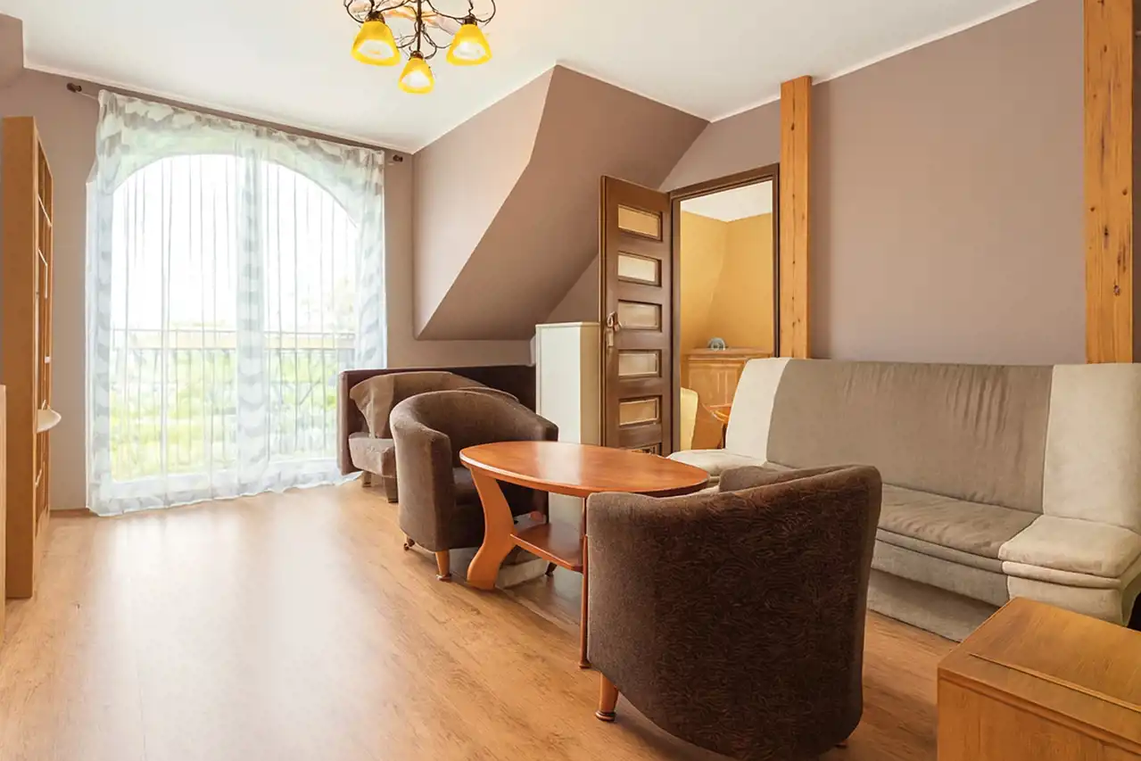 - wyjście na balkony z widokiem na ogród i okolicę.