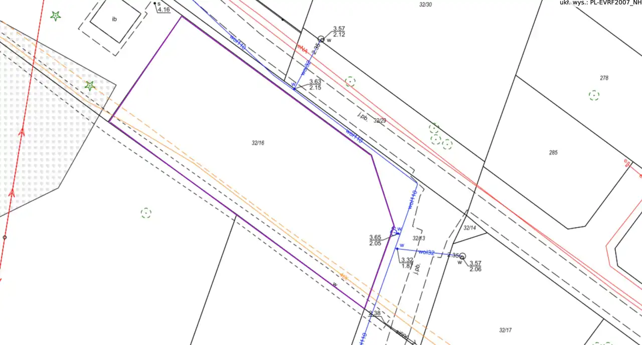 - dojazd do działki drogą asfaltową poprzez drogę o nawierzchni gruntowej utwardzonej,