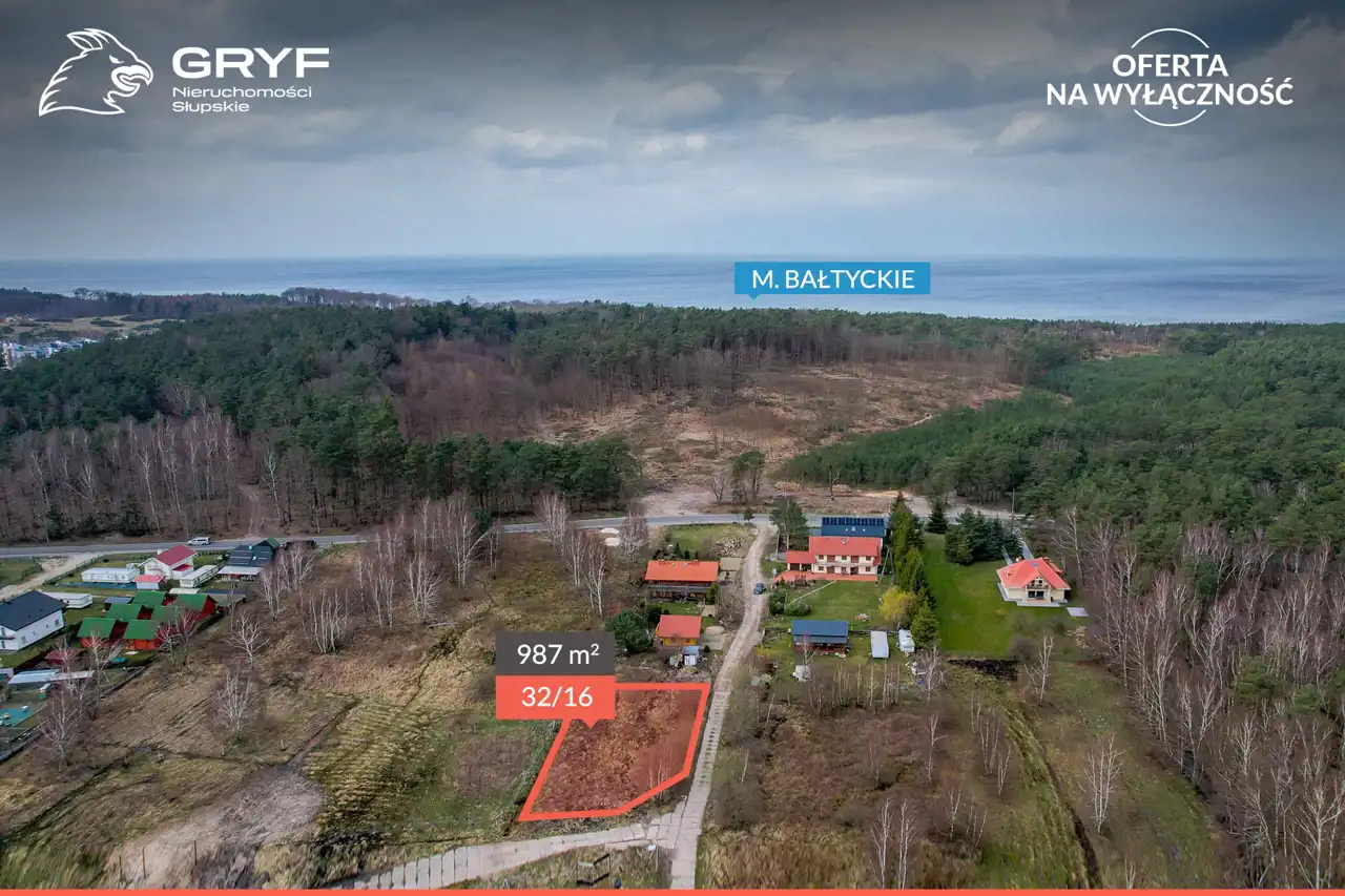 Działka w miejscowości Dębina o powierzchni 987 m2. Płaska uzbrojona o nieregularnym kształcie. Sąsiedztwo terenu stanowią tereny zabudowy usługowo-mieszkalnej oraz tereny leśne. Działkę porastają trawy i nieliczne samosiejki, działka jest niezabudowana. Oddalona od Morza Bałtyckiego w odległości 500 metrów!
