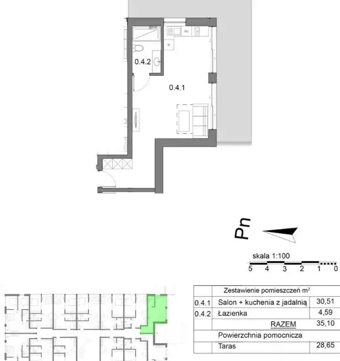 - Charakterystyka mieszkania 35.1 m2, 1 pokój