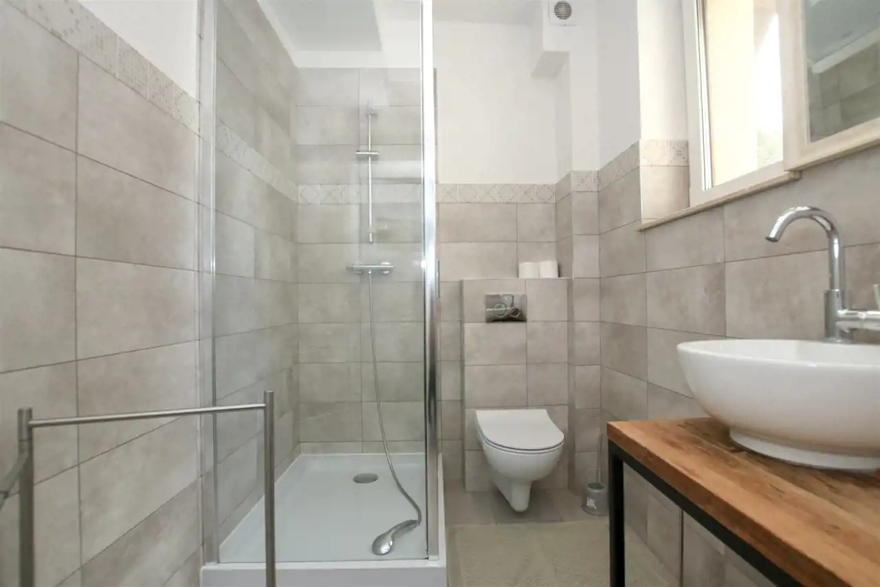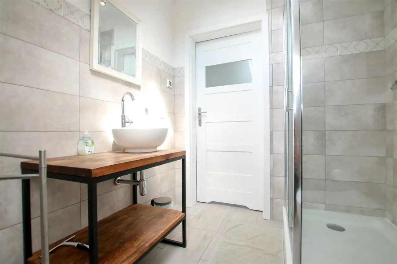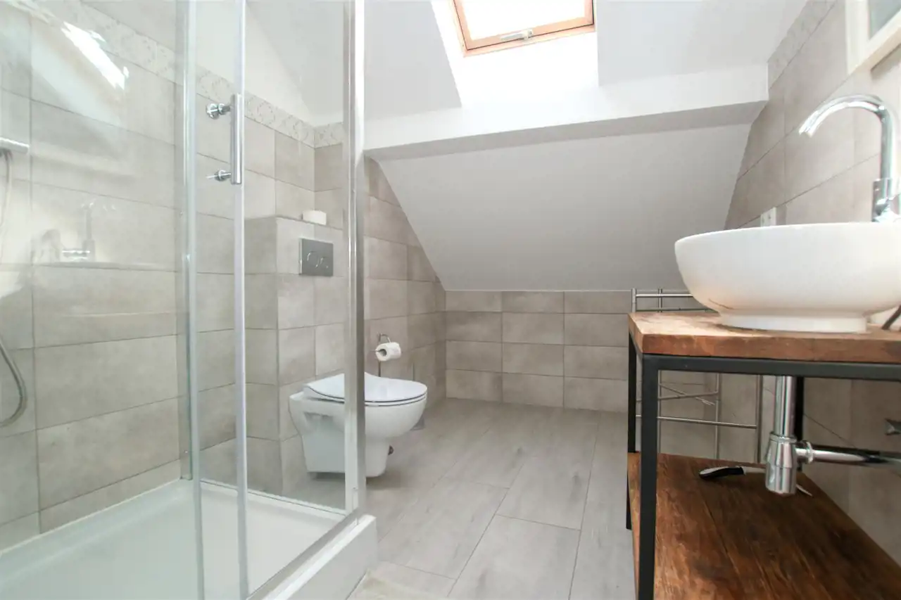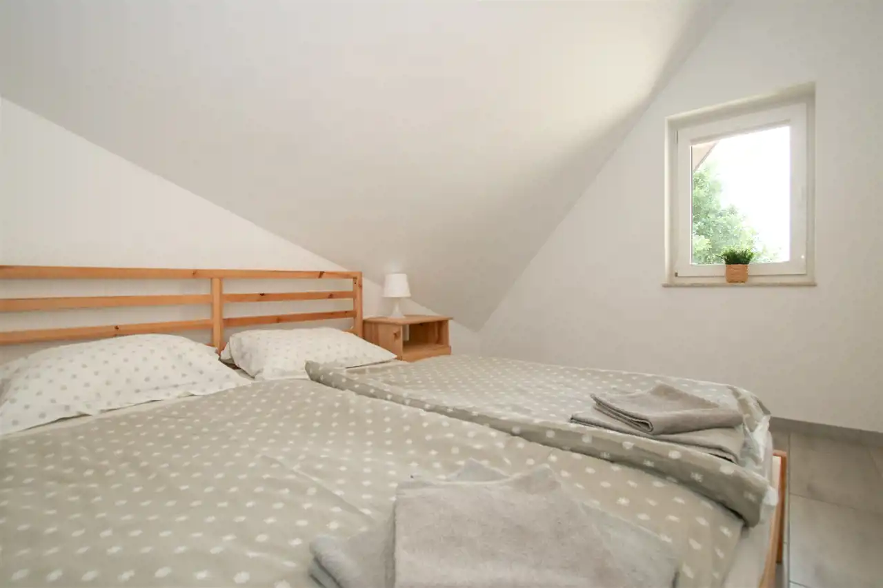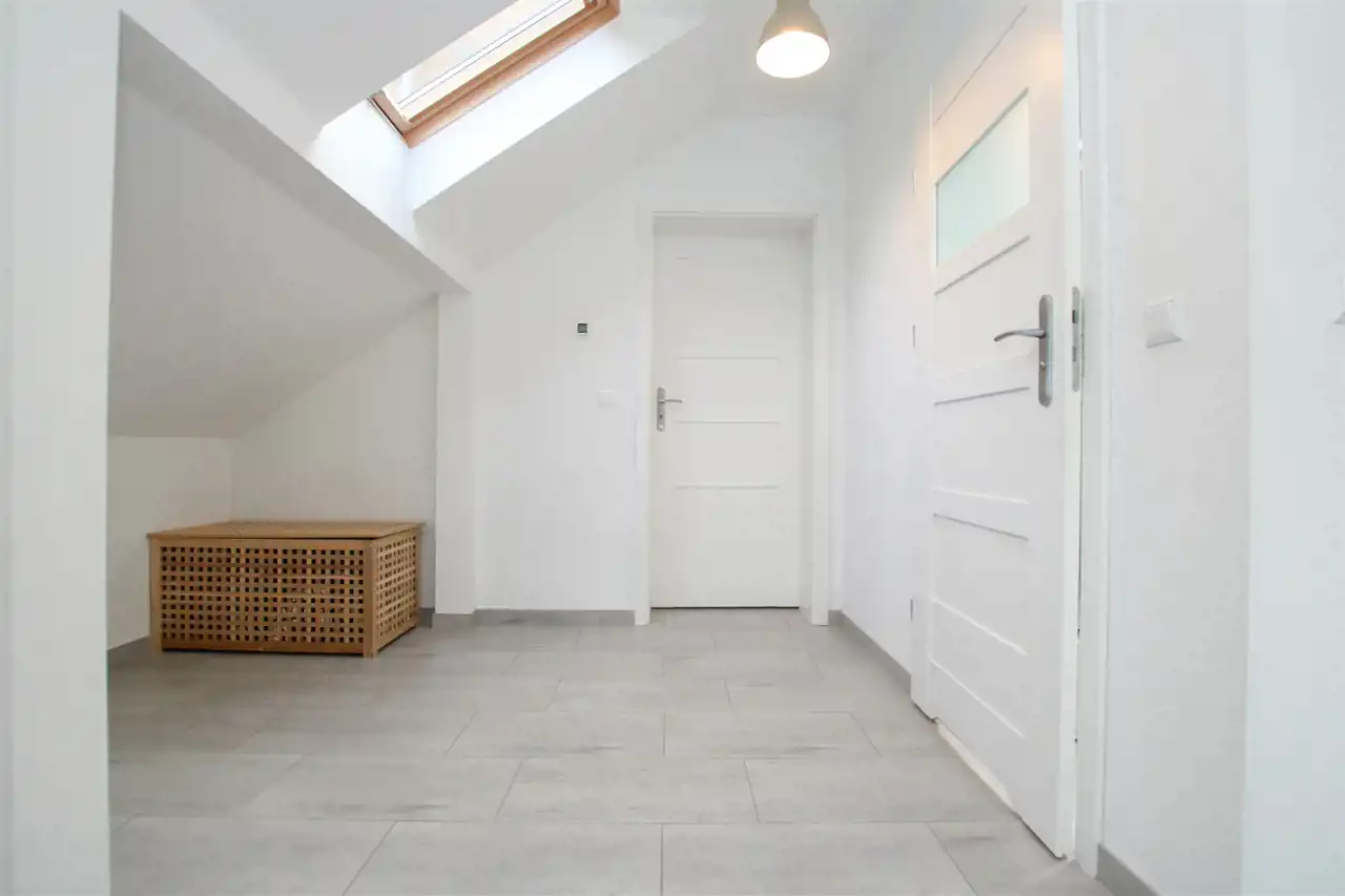 Nowoczesne wnętrze o funkcjonalnym układzie: przestronny salon z aneksem kuchennym z miejscem na przestrzeń wypoczynkową, łazienka oraz wygodny przedpokój. Wysoki standard wykończenia - gresy, nowoczesna armatura, drewniane akcenty i naturalne kolory tworzą klimat komfortu i relaksu. Na poziomie drugim znajduje się przestrzeń sypialniana z łóżkami, toaletką oraz osobną sypialnią z podwójnym łóżkiem. Dodatkowym atutem jest druga łazienka, która umili pobyt całej rodzinie i nikt nie będzie czekał w kolejce do toalety. W apartamencie jest ogrzewanie podłogowe. W pełni umeblowany i wyposażony: pralka, lodówka, płyta indukcyjna, zmywarka, telewizor, czajnik, naczynia - wszystko, czego potrzebujesz, by od razu zacząć wynajmować lub wypoczywać.