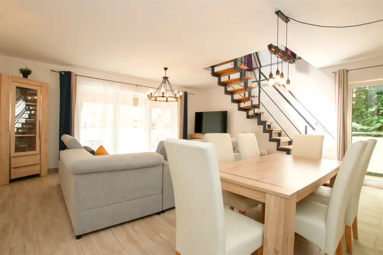 Gotowy biznes lub prywatna oaza - apartament dwupoziomowy w nadmorskiej miejscowości Dębina. Zamieszkaj lub zarabiaj od zaraz - bez remontów i bez stresu!