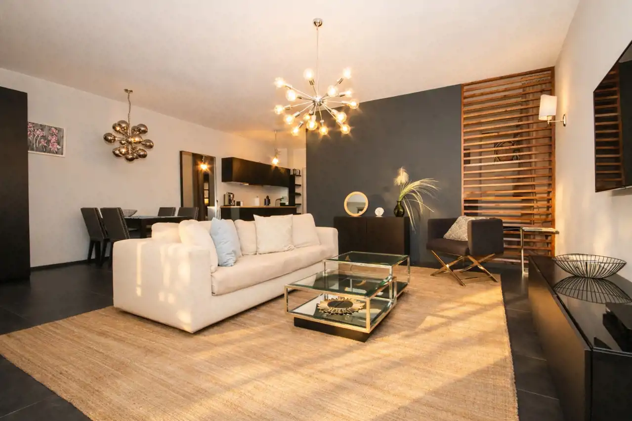 Apartament o powierzchni 55,00 m² znajduje się na parterze trzypiętrowego budynku wielorodzinnego. Jest w pełni urządzony i gotowy do zamieszkania lub natychmiastowego wynajmu. Został starannie wykończony z wykorzystaniem materiałów wysokiej jakości, co gwarantuje trwałość, estetykę i komfort użytkowania.