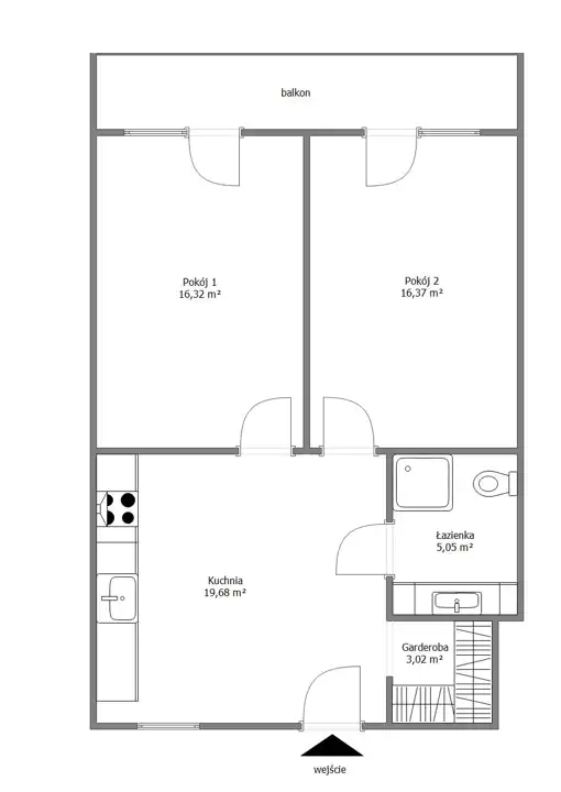 - Charakterystyka mieszkania 60 m2, 2 pokoje