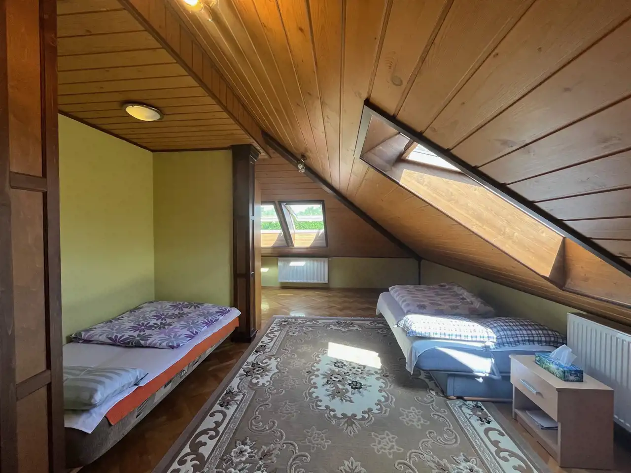 Poddasze: 2 sypialnie, pokój kąpielowy.