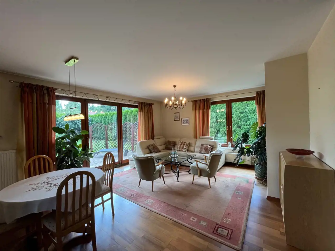 - Salon Pełen Słońca: Przestronny salon z bezpośrednim wyjściem na słoneczny taras to idealne miejsce na poranną kawę i letnie wieczory w gronie bliskich.