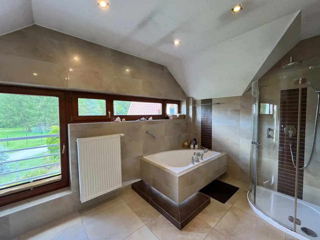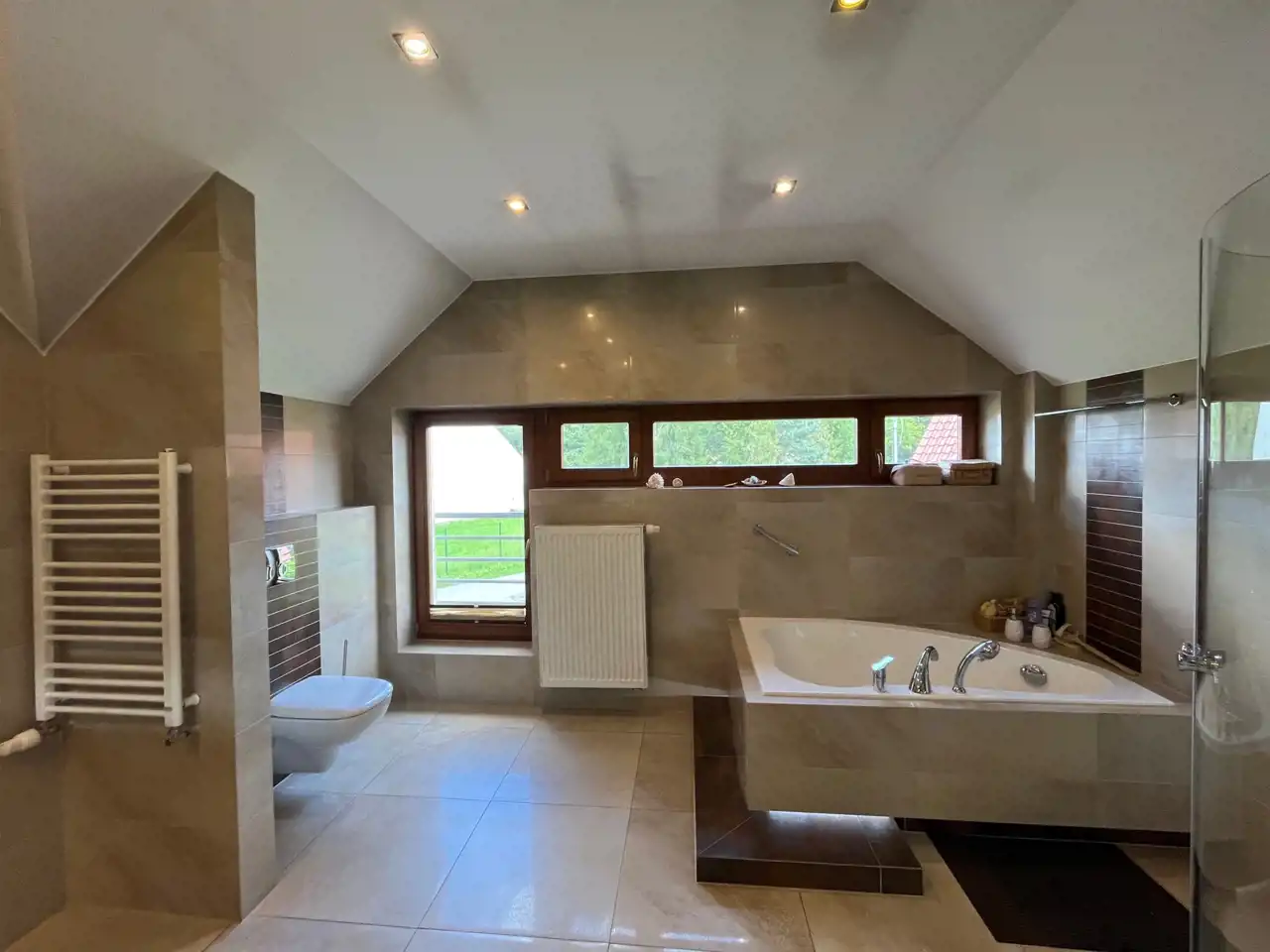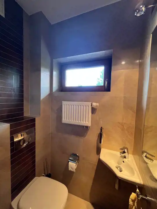 - Pokój Kąpielowy: Duża, jasna przestrzeń kąpielowa pozwoli Ci na relaks po ciężkim dniu w iście królewskim stylu.
