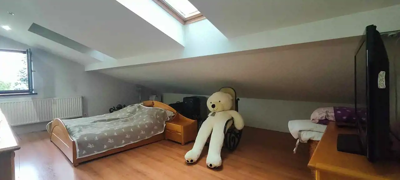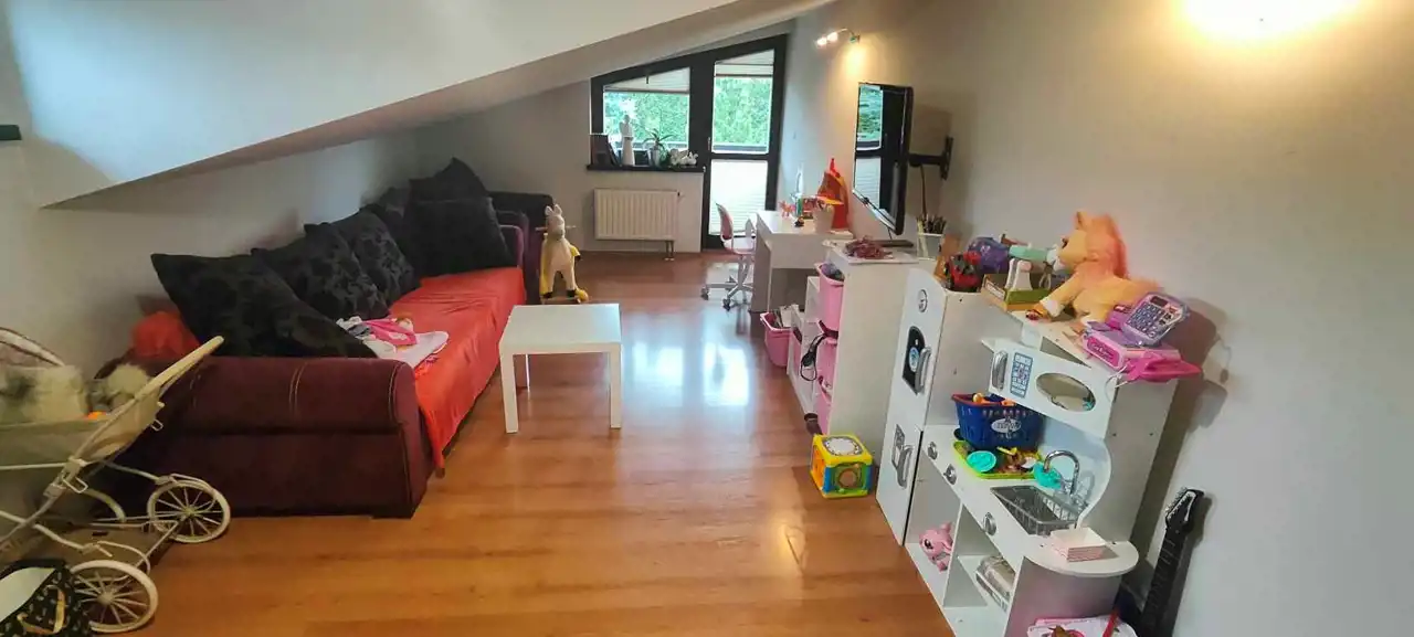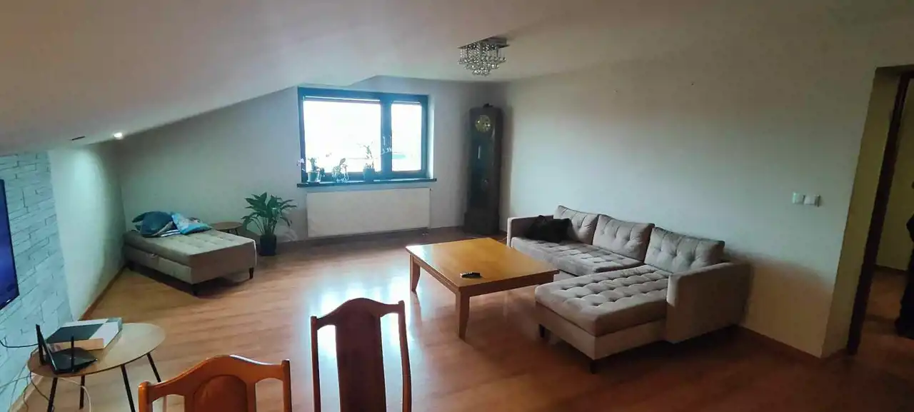 Poddasze: salon, duża sypialnia z 2 oknami dachowymi, 2 sypialnie z wyjściem na balkon, kuchnia, łazienka, wc przedpokój