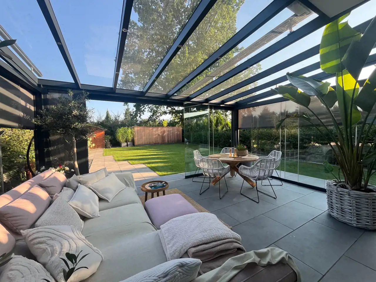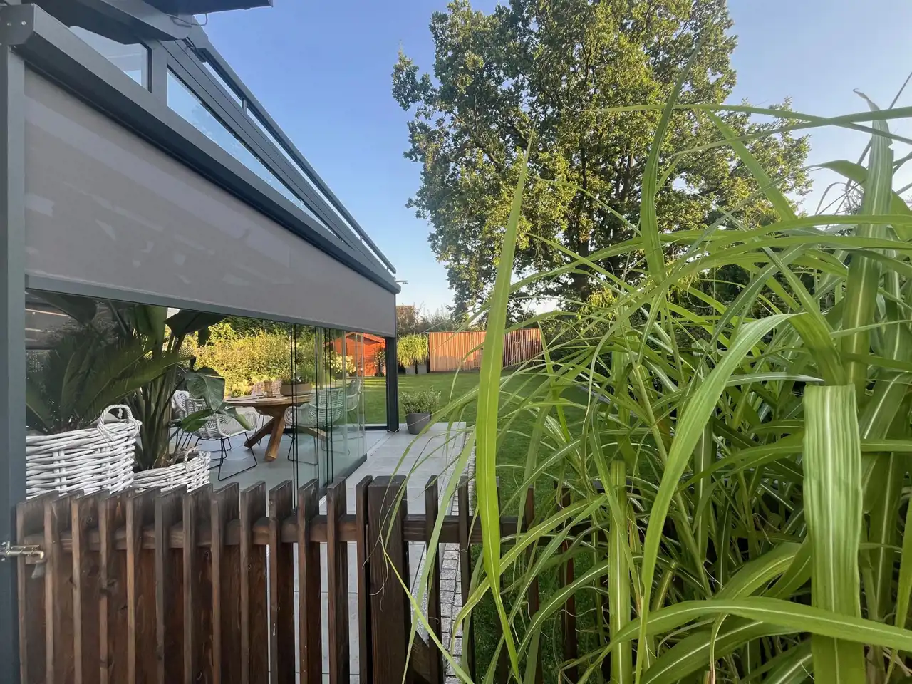 Parter: duży salon z wyjściem do słonecznego ogrodu zimowego, aneks kuchenny, łazienka, kotłownia, garaż
