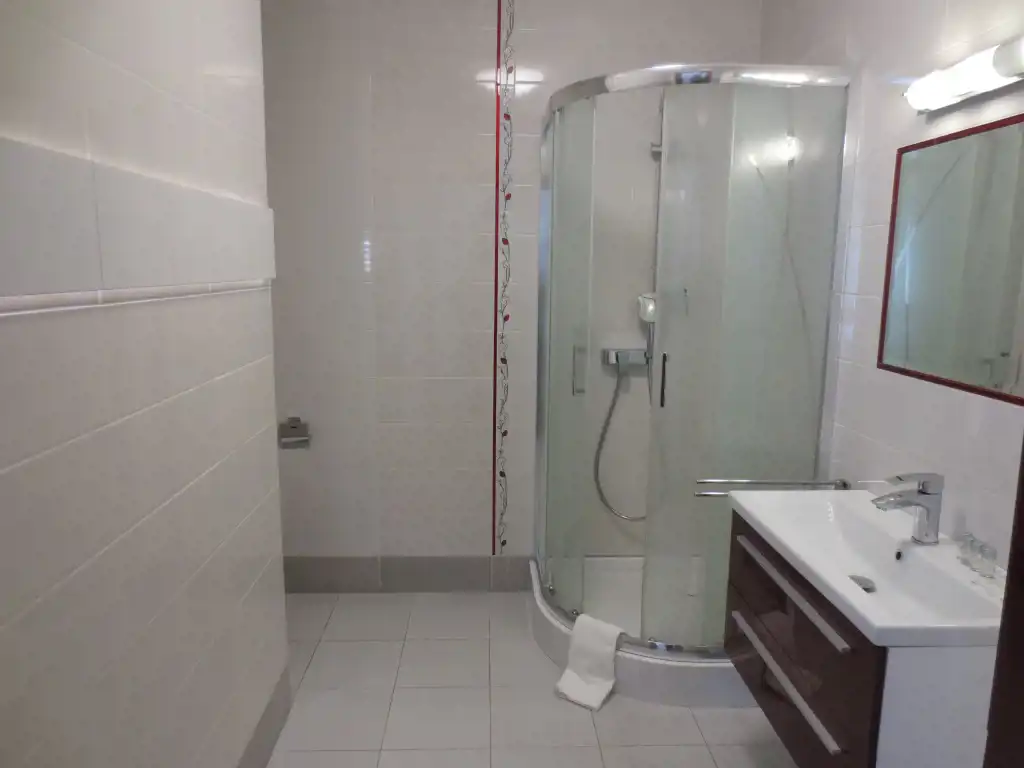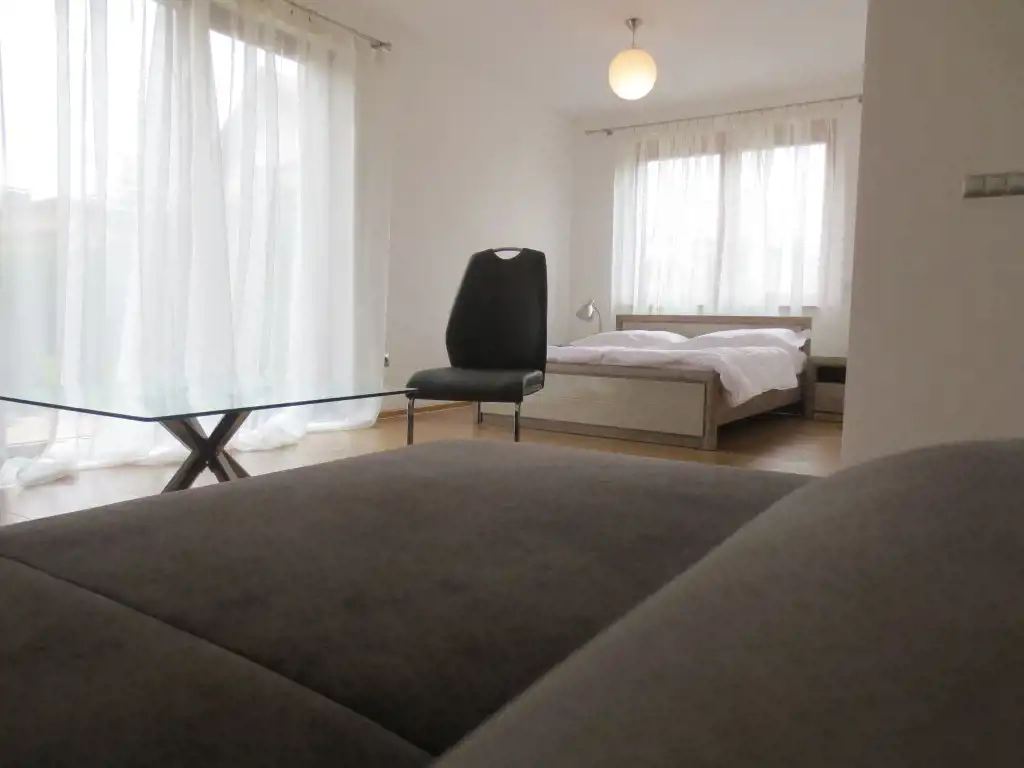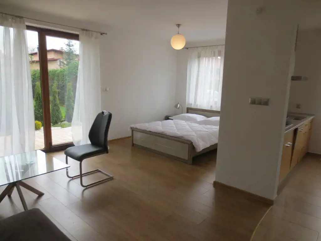 1 Apartament: salon z aneksem kuchennym, aneks sypialniany, sypialnia, łazienka, oraz do mieszkania przynależy duży wybrukowany taras na który mamy wejście z salonu.
