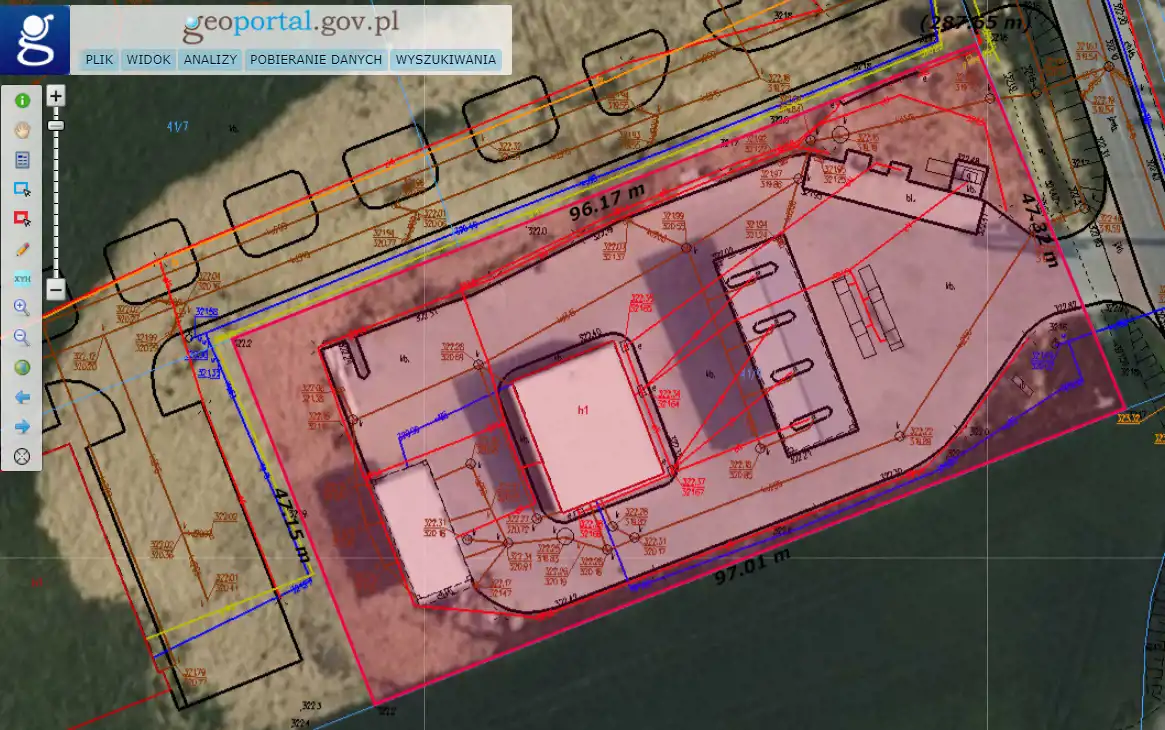 The facility is situated on a 4574 m² plot. The land has approximate dimensions of 47x97x47x96 meters, is fully developed, and has access via an asphalt road.
