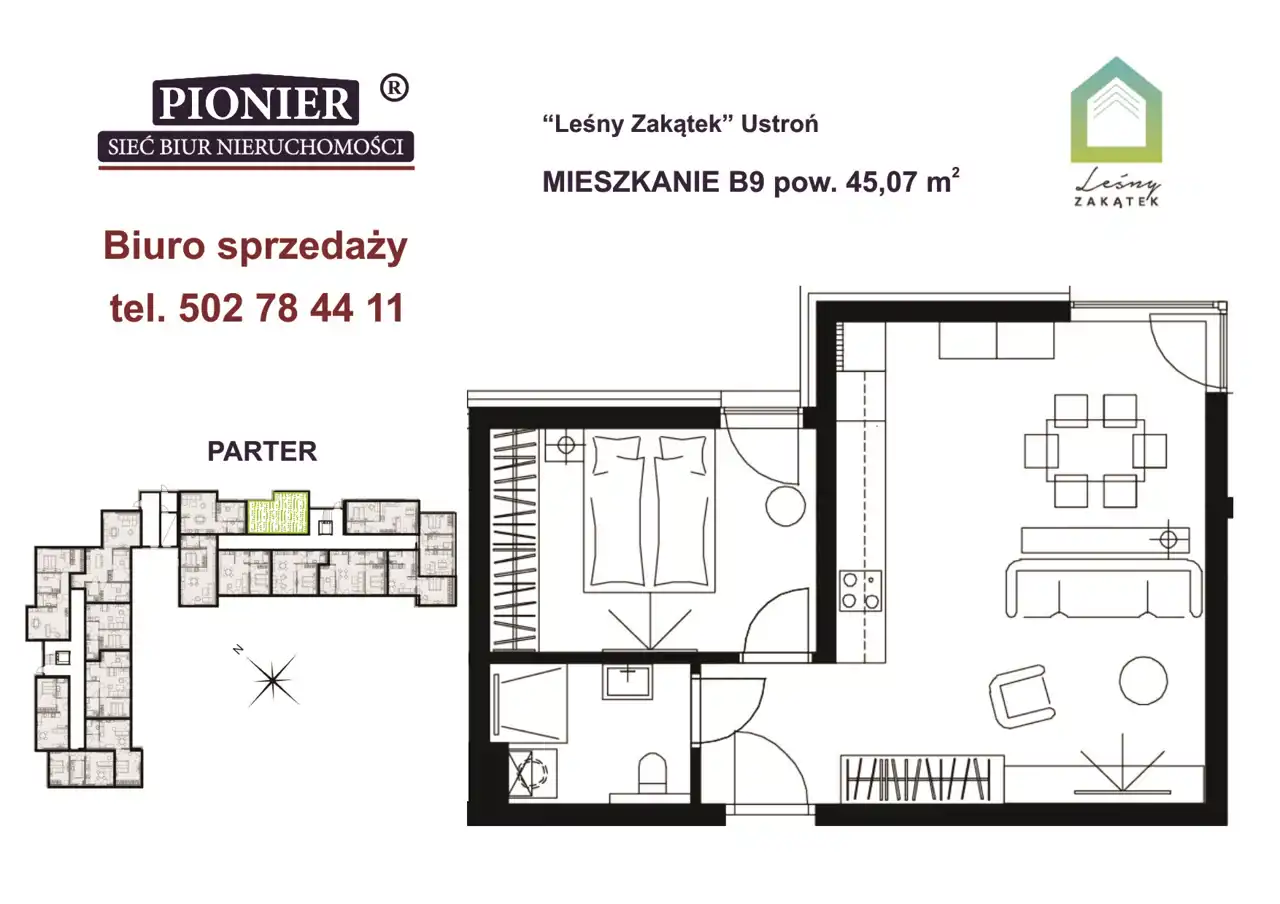 - Charakterystyka mieszkania 45.07 m2, 2 pokoje