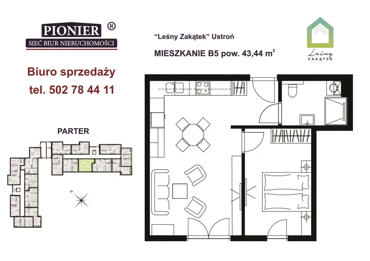 - Charakterystyka mieszkania 43.44 m2, 2 pokoje