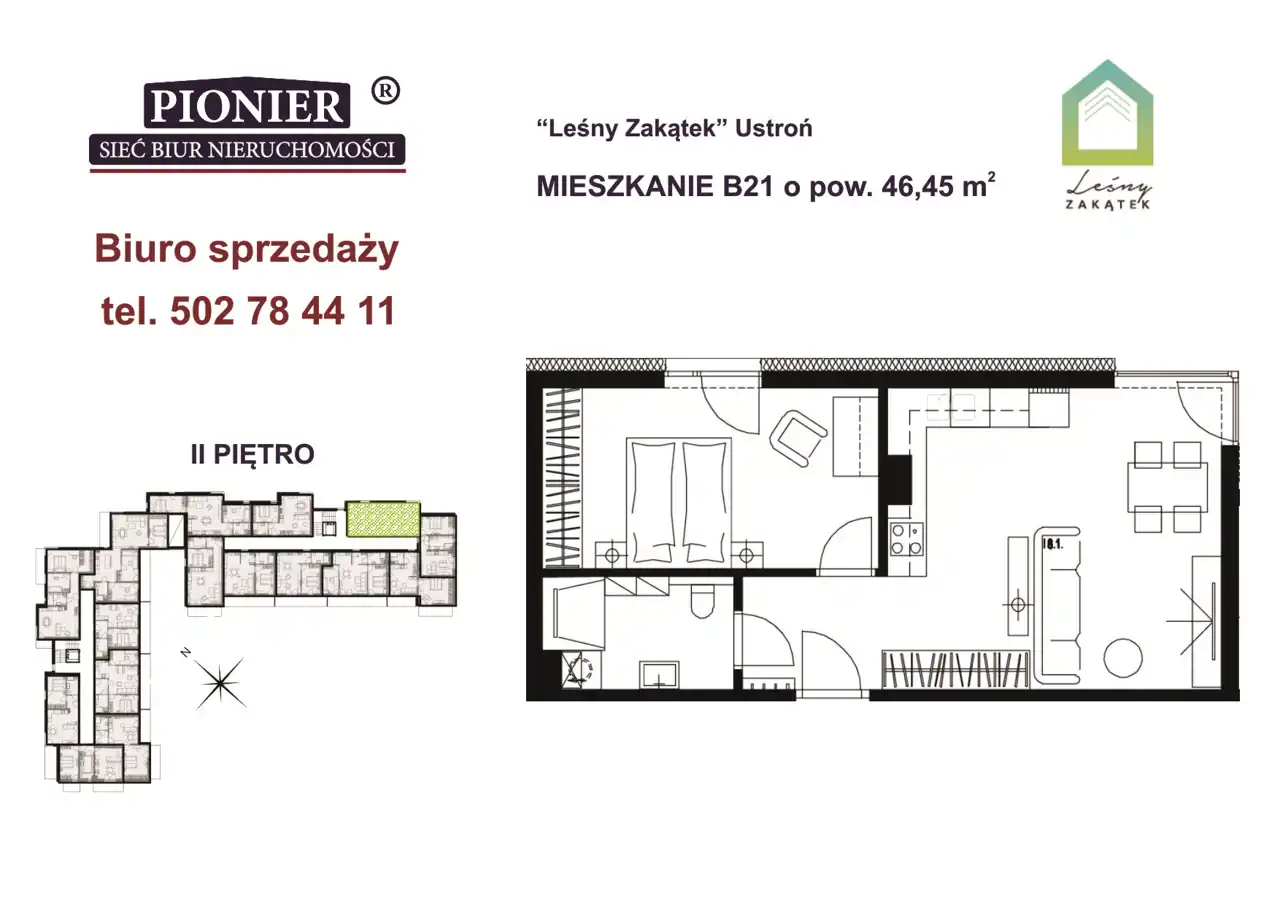 - Charakterystyka mieszkania 46.45 m2, 2 pokoje