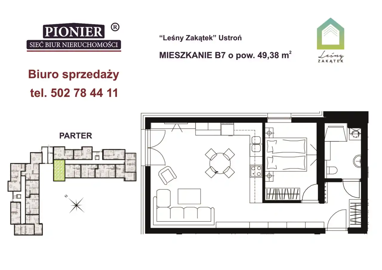 - Charakterystyka mieszkania 49.38 m2, 2 pokoje