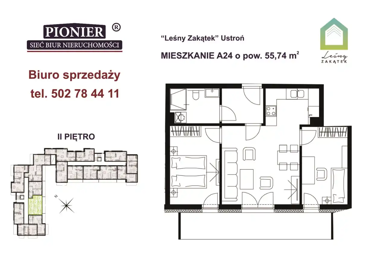 - Charakterystyka mieszkania 55.74 m2, 3 pokoje