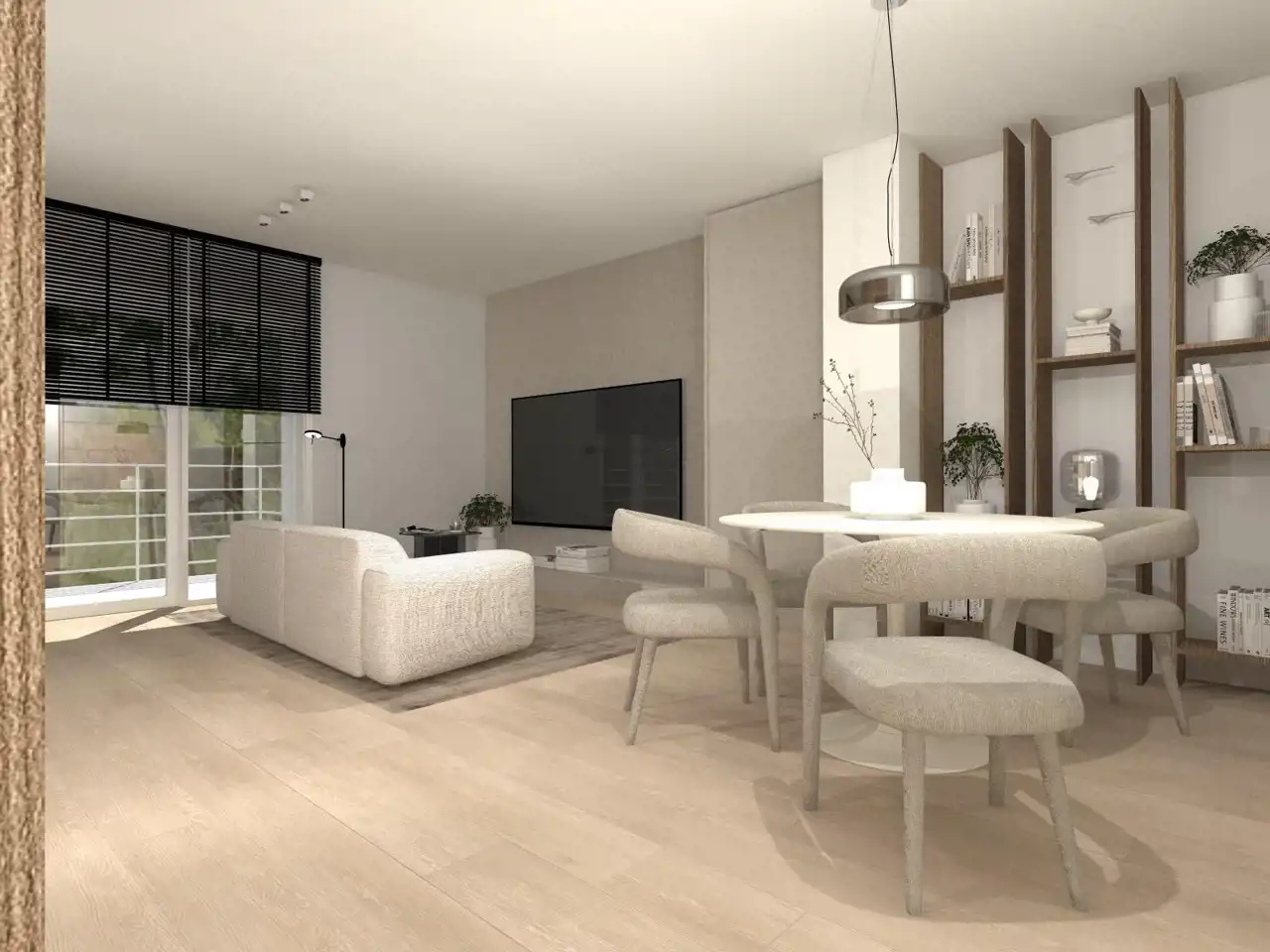 - Salon z aneksem kuchennym – idealna strefa relaksu i spotkań.