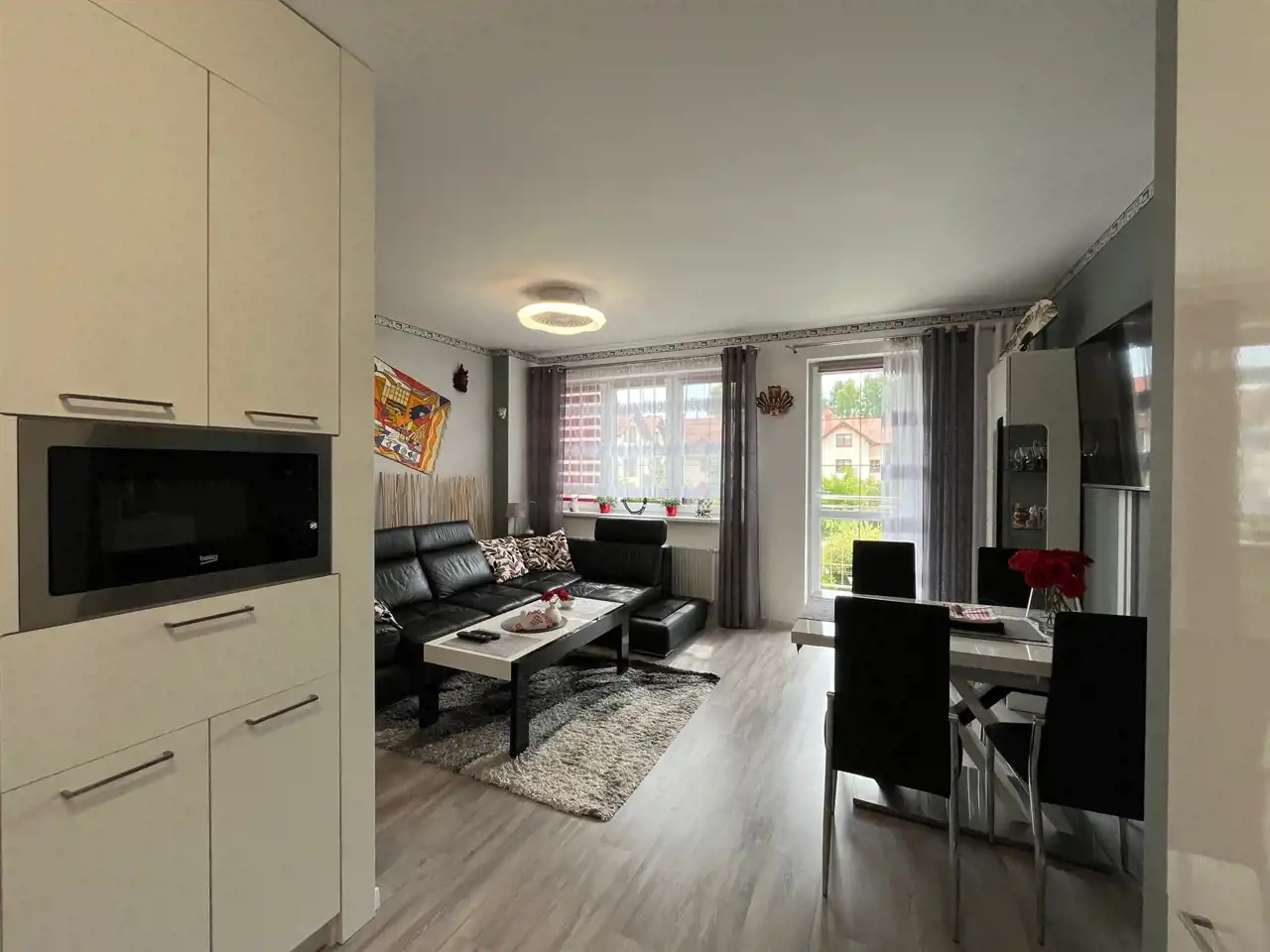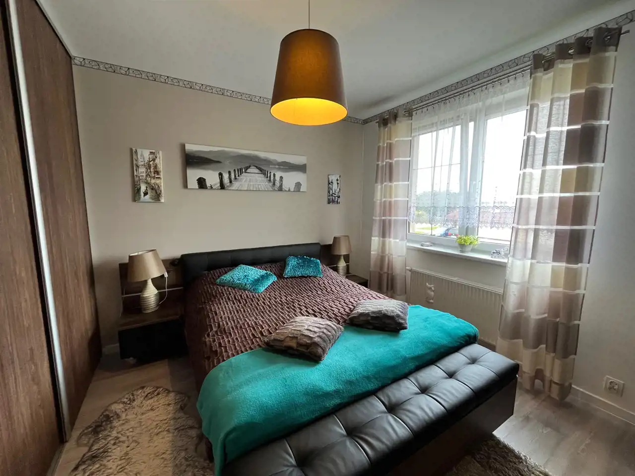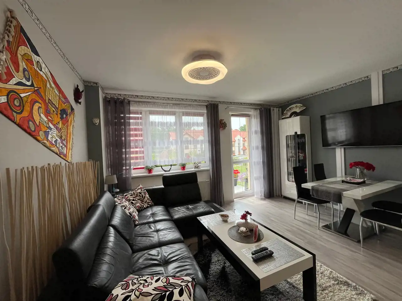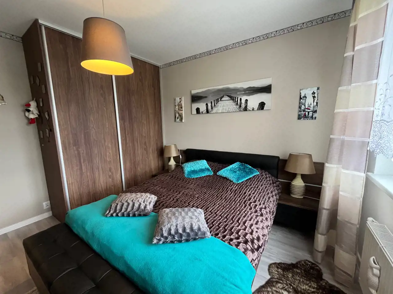 Apartament składa się z salonu z wyjściem na słoneczny balkon, aneksu kuchennego, 2 sypialni, łazienki.