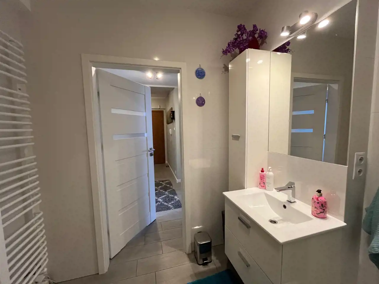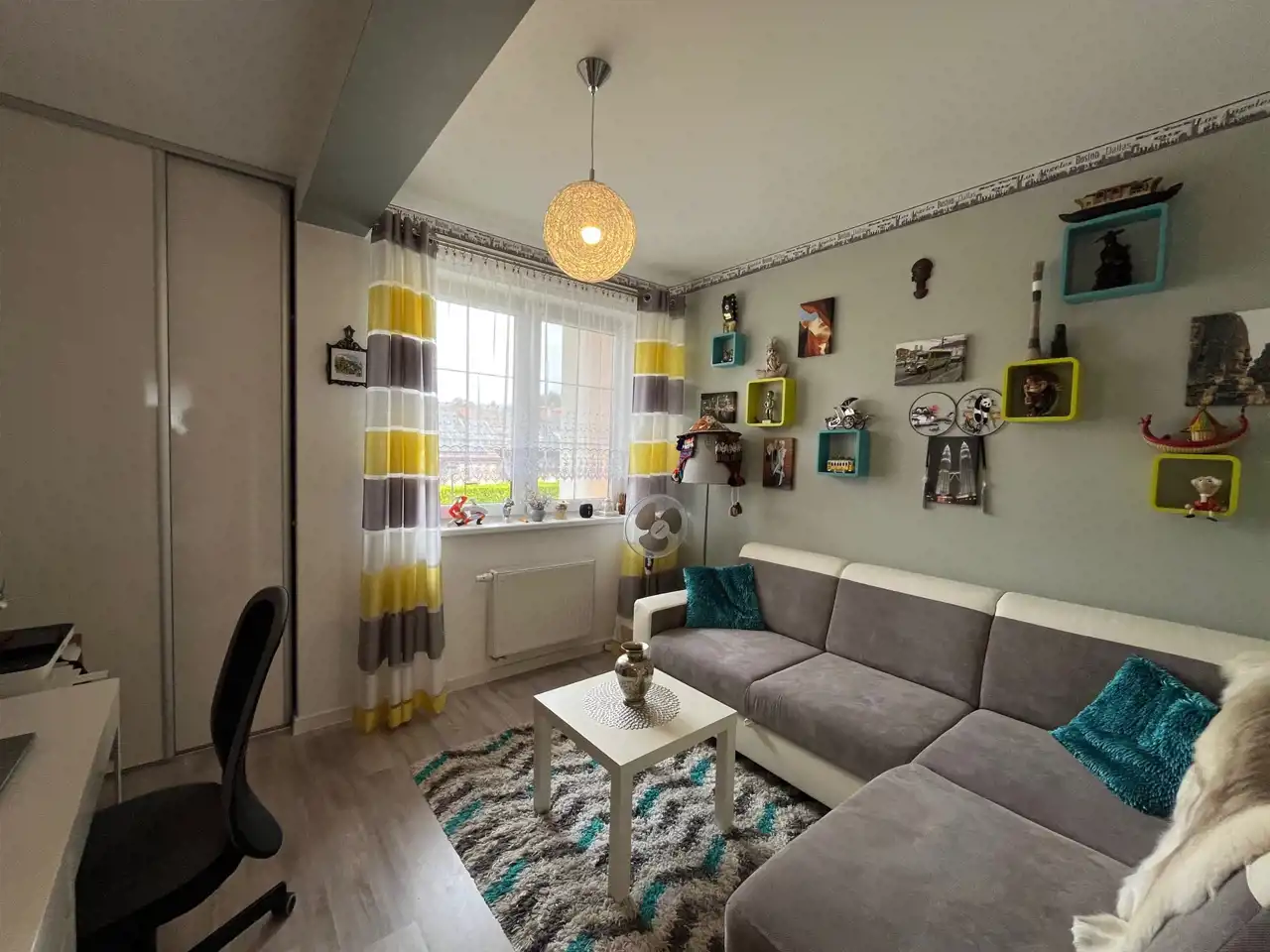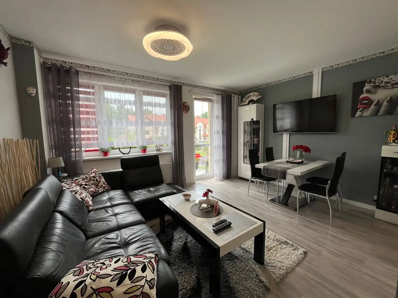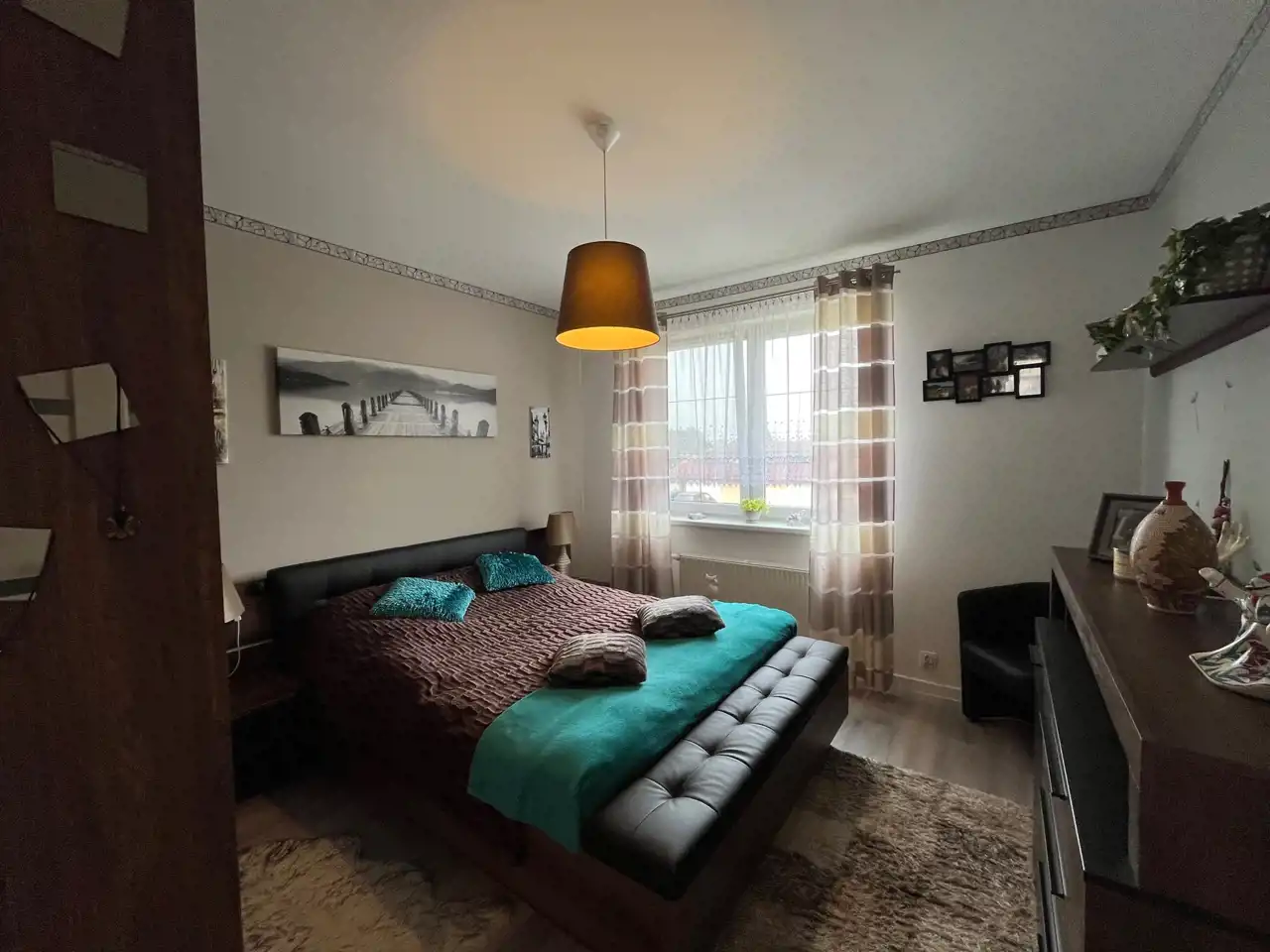 Apartament składa się z salonu z wyjściem na słoneczny balkon, aneksu kuchennego, 2 sypialni, łazienki.
