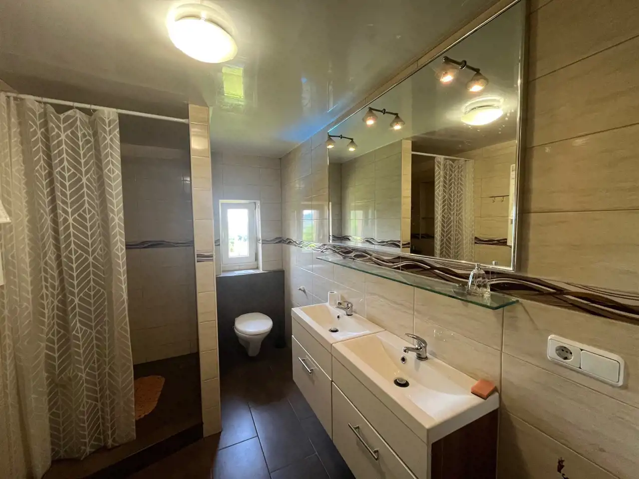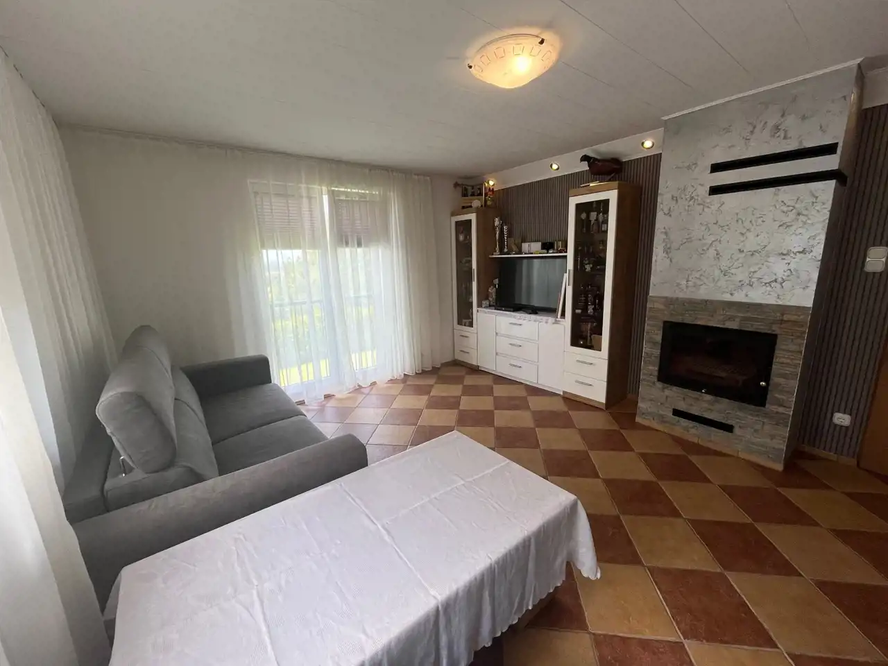 Mieszkanie jest dwupoziomowe i składa się w pierwszej kondygnacji z salonu z kominkiem, kuchni z jadalnią i wyjściem na widokowy balkon, pokoju, łazienki.