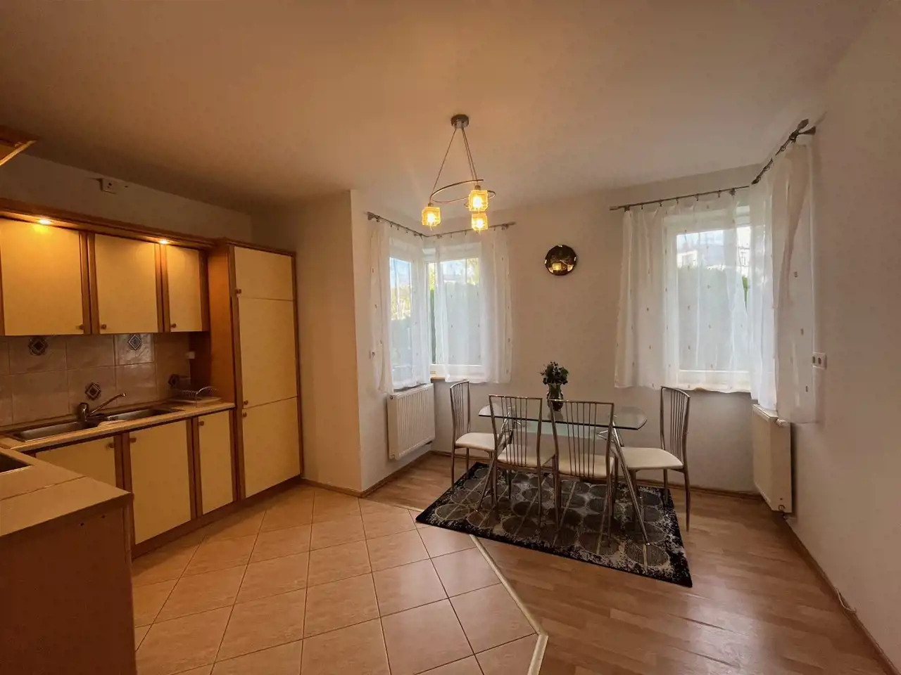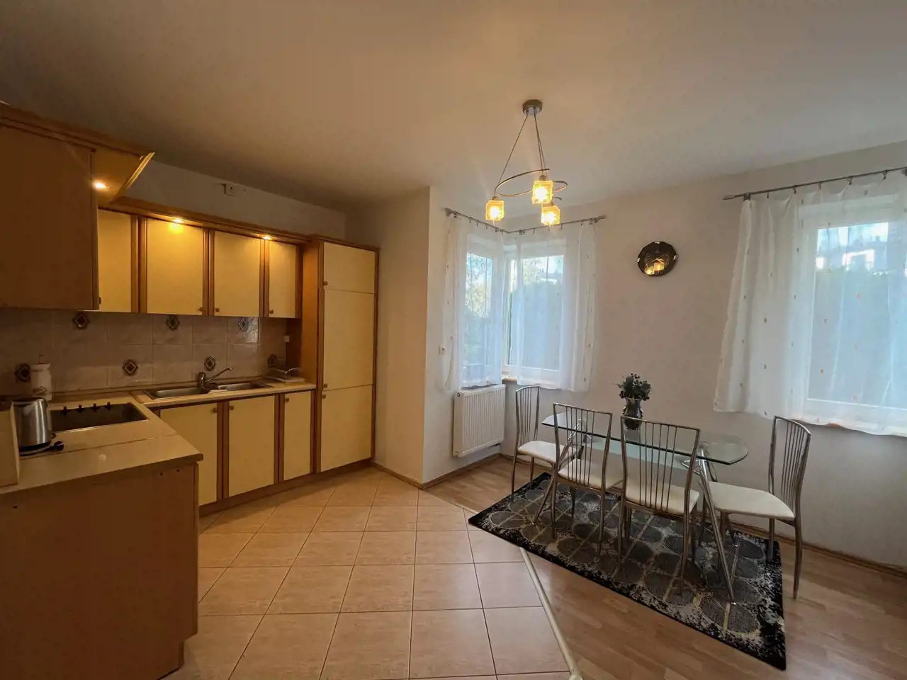 - Duża kuchnia z jadalnią (może pełnić funkcję drugiego pokoju/sypialni).