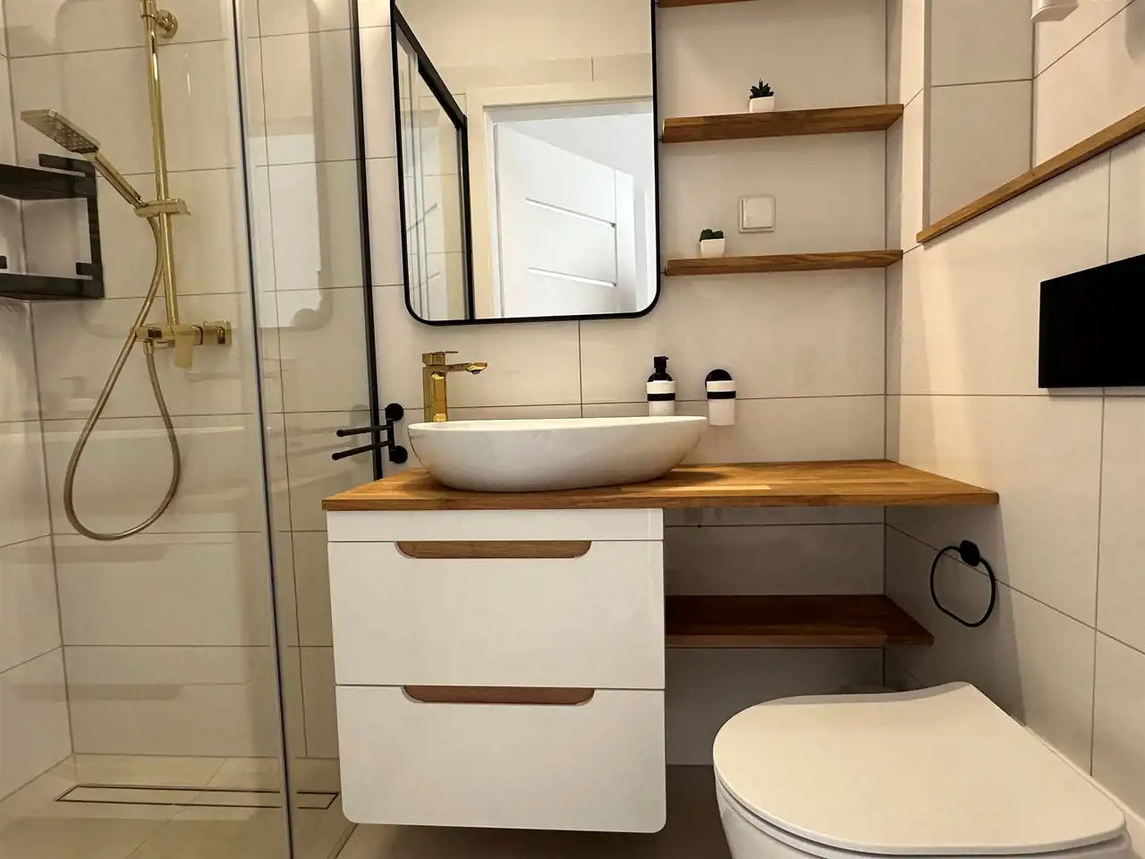 - Media Ogrzewanie: elektryczne; Woda: ciepła - terma; Kanalizacja: miejska; Prąd: jest; Gaz: brak