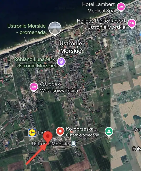 - Lokalizacja: ul. Kołobrzeska, Ustronie Morskie, ok 1,35 km od linii brzegowej