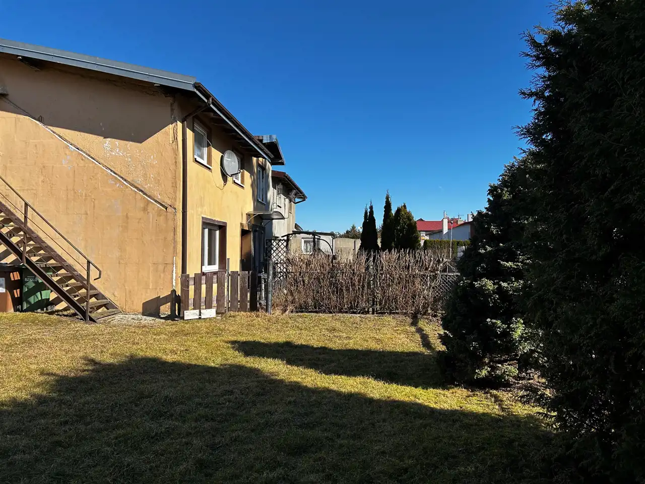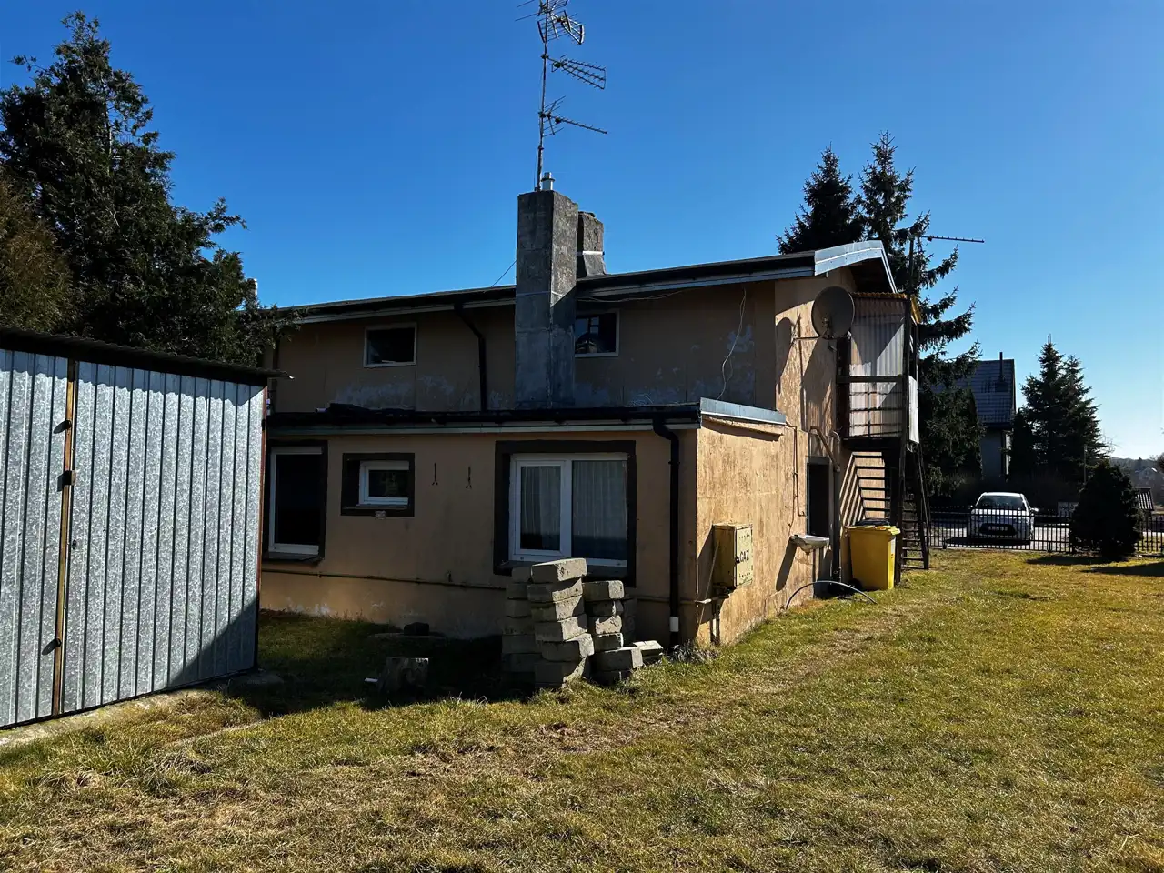 Działka o powierzchni 806m² zabudowana połową domu o powierzchni 91,93m². Na terenie nieruchomości znajduje się lokal mieszkalny stanowiący część budynku, przeznaczony do generalnego remontu.