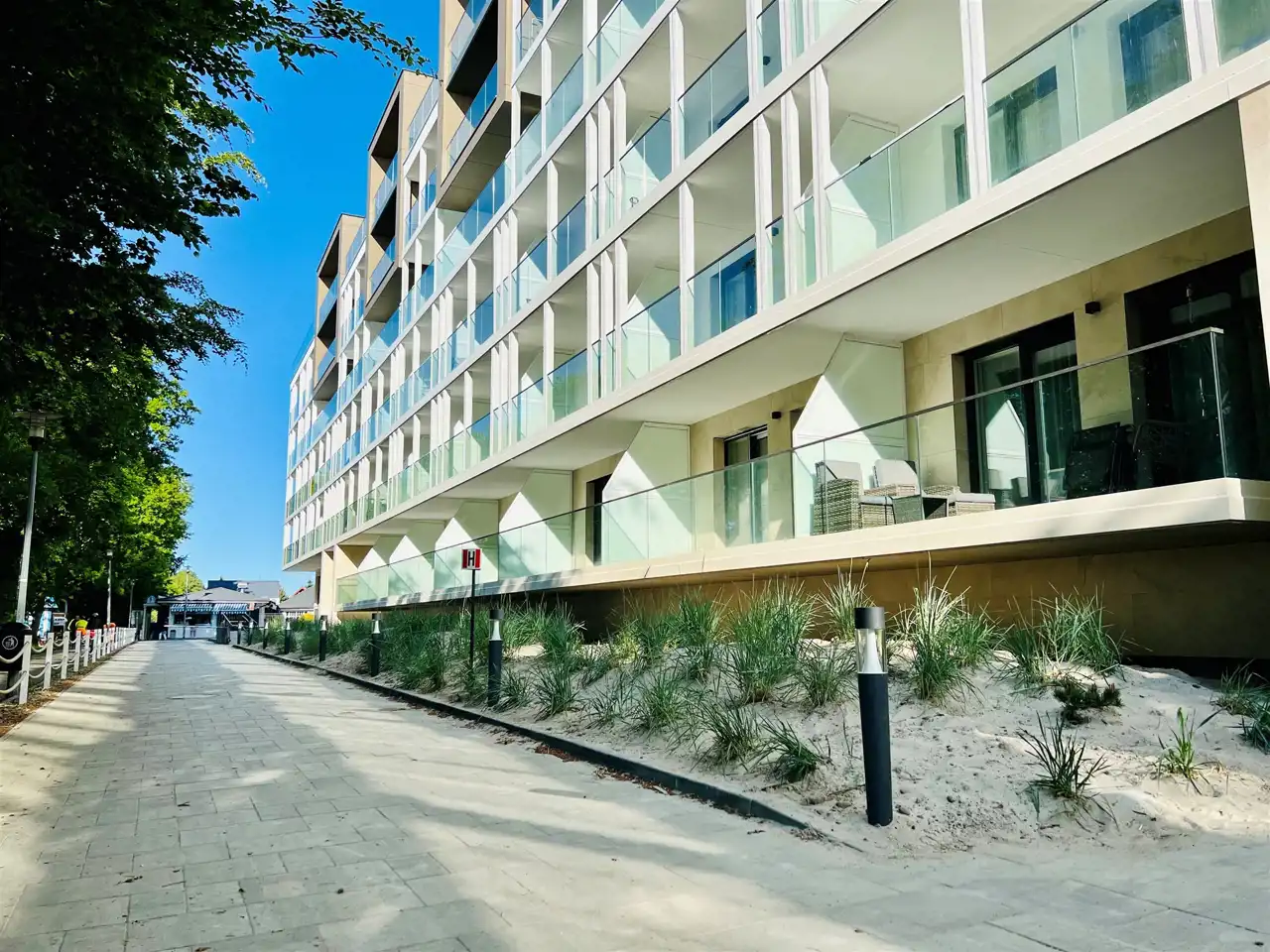Inwestycja nad samym morzem zlokalizowana bezpośrednio przy zejściu na piękną, szeroką, piaszczystą plażę.