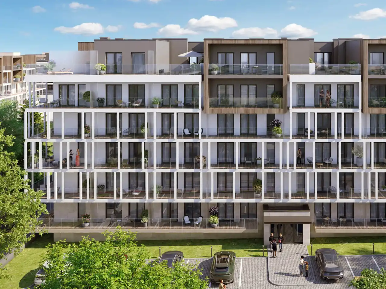 W budynkach zaprojektowano cichobieżne windy, eleganckie drzwi wejściowe oraz części wspólne wykończone w hotelowym standardzie. Inwestycja jest w pełni dostosowana do potrzeb osób niepełnosprawnych.