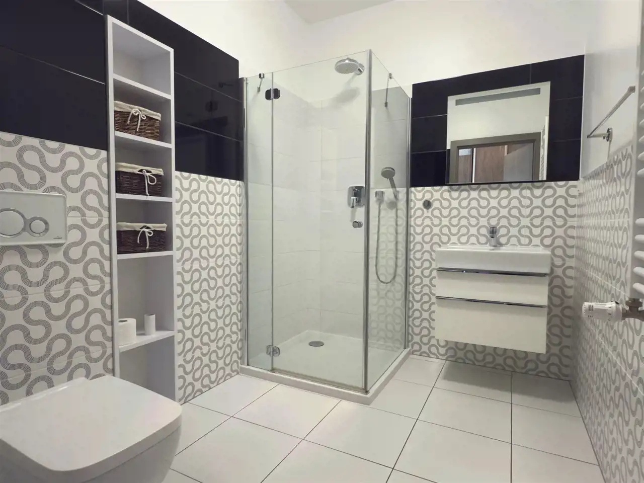 - przestronnej łazienki,