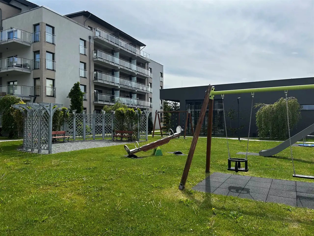 - dostęp do atrakcyjnych części wspólnych: plac zabaw, całoroczny basen i jacuzzi,