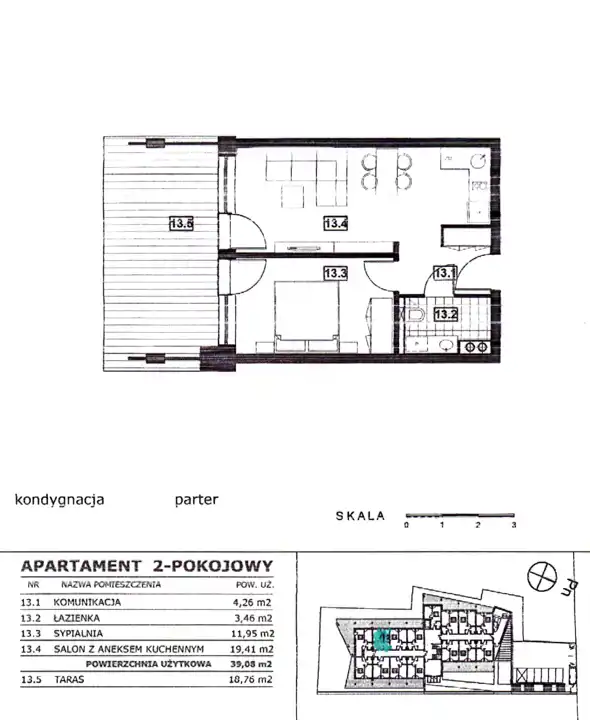 - Charakterystyka mieszkania 39.08 m2, 2 pokoje