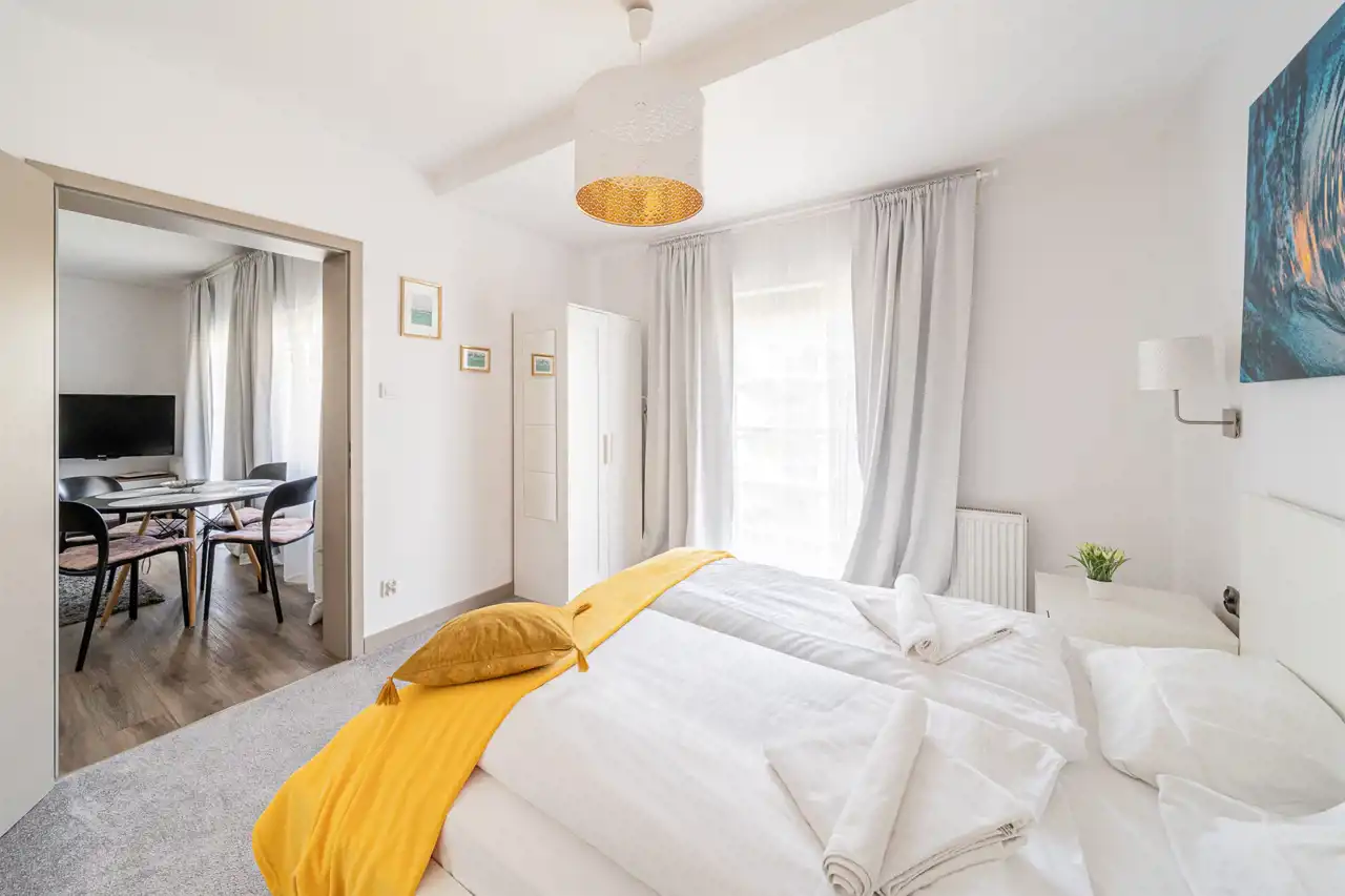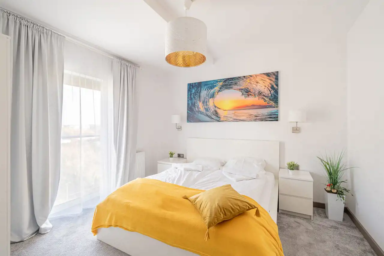 - Sypialnia – przytulna, z miejscem na relaks i regenerację