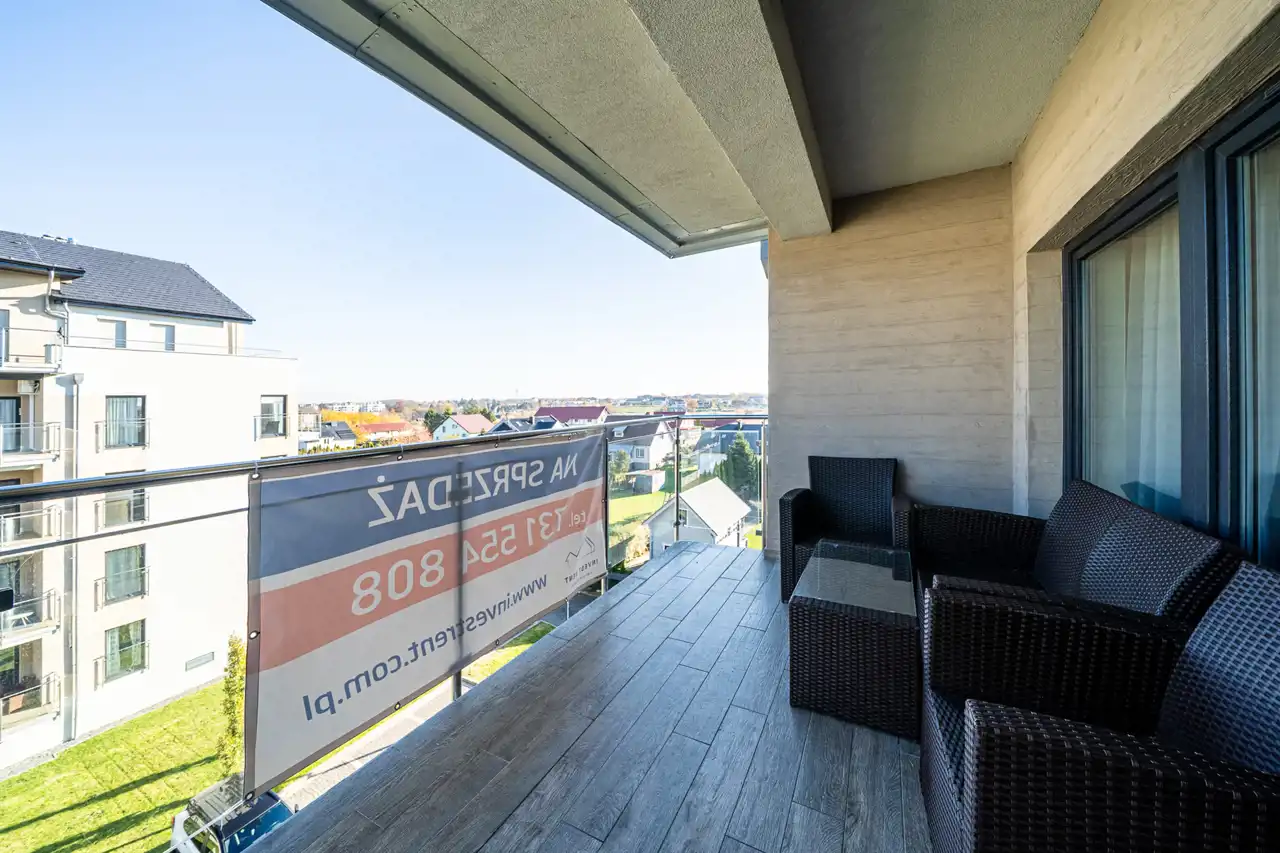 Na sprzedaż nowoczesny i przytulny apartament o powierzchni 38 m² z przestronnym tarasem (11 m²), położony na 3 piętrze w prestiżowym kompleksie „5 Mórz” w Sianożętach — zaledwie 400 metrów od plaży.