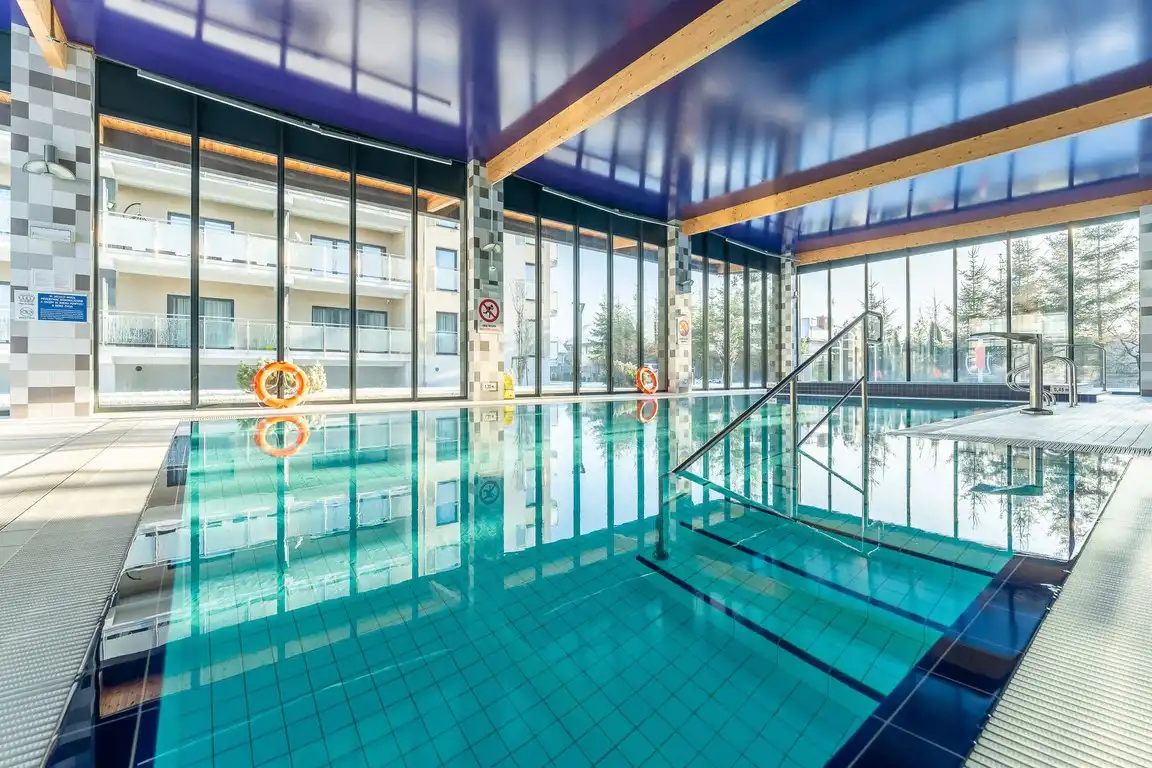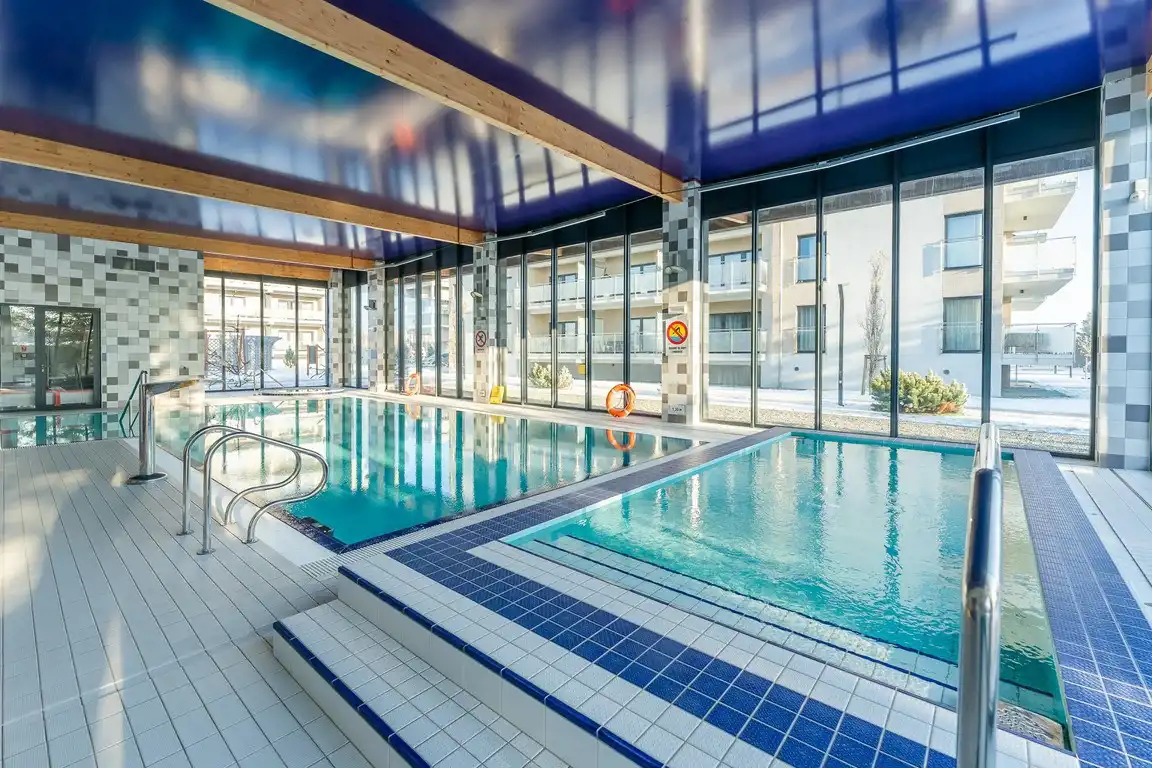 Kompleks inwestycji składa się z pięciu czteropiętrowych apartamentowców, których mieszkańcy mają do dyspozycji kryty basen oraz strefę spa, ponadto plac zabaw i siłownię zewnętrzną (fitness).