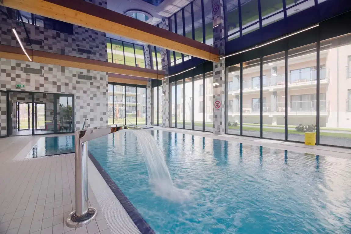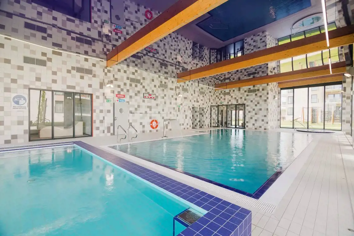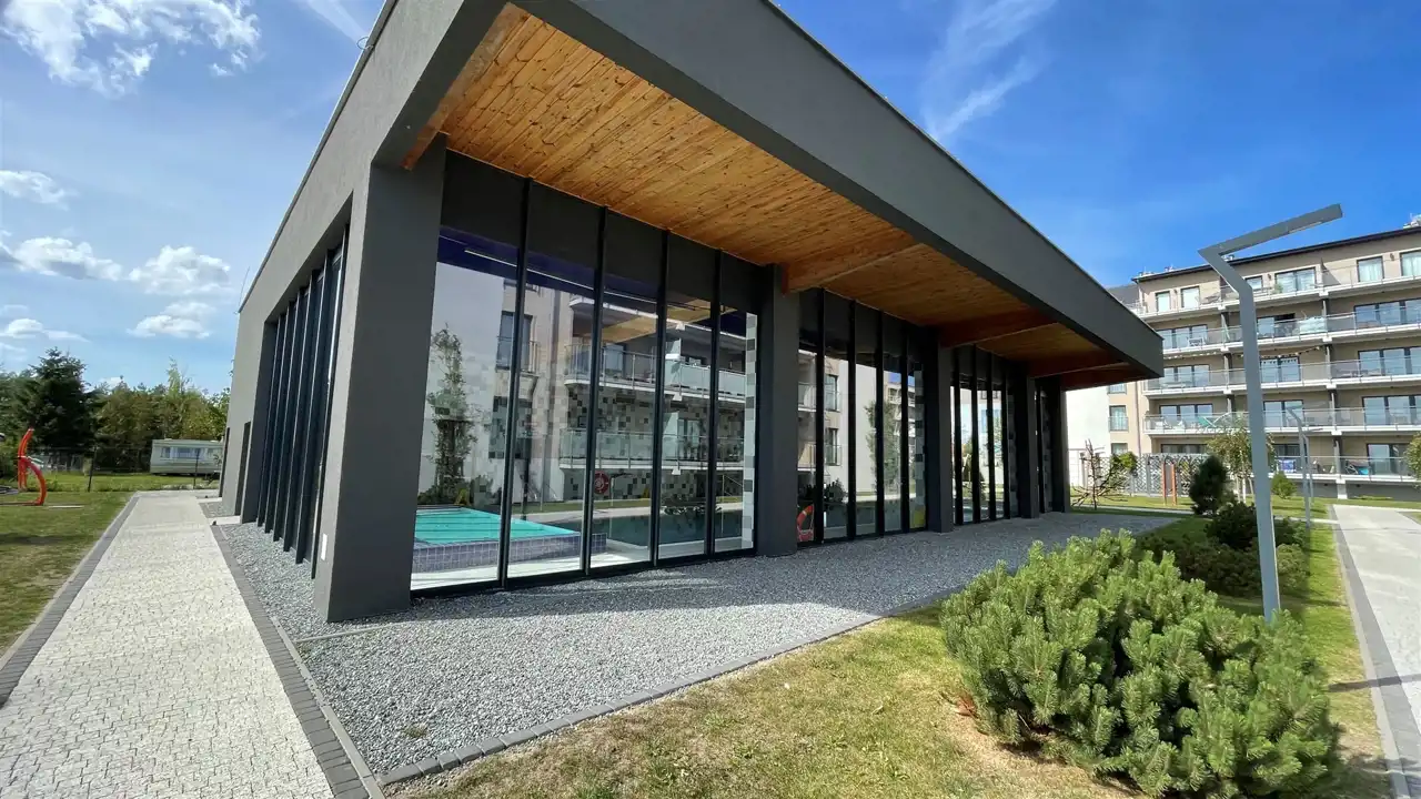 Kompleks inwestycji składa się z pięciu czteropiętrowych apartamentowców, których mieszkańcy mają do dyspozycji kryty basen oraz strefę spa, ponadto plac zabaw i siłownię zewnętrzną (fitness).