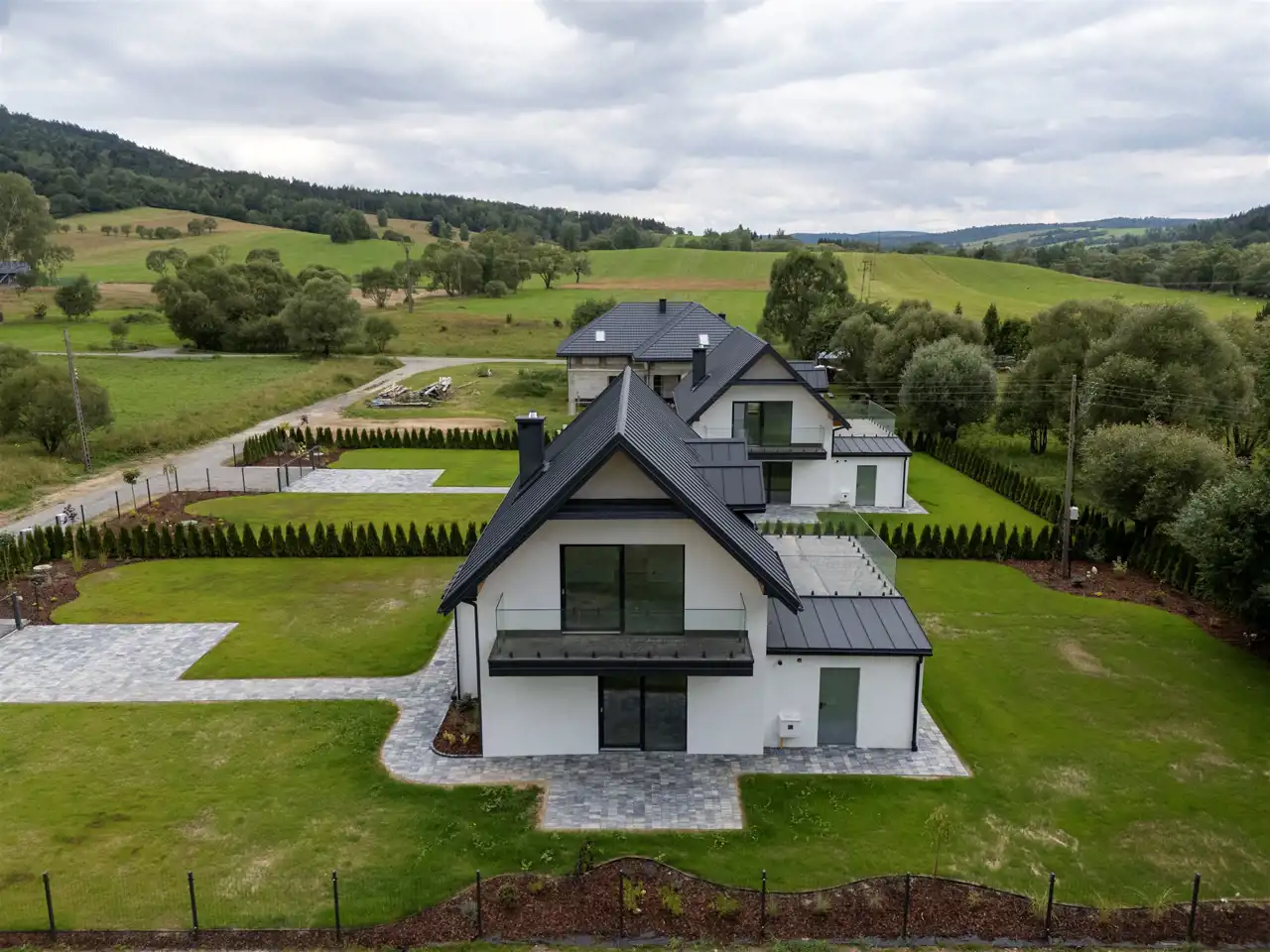To co wyróżnia tą nieruchomość to nowoczesna architektura, duże panoramiczne okna, tarasy i oryginalna bryła, która zdecydowanie wyróżnia się wśród innych zabudowań.